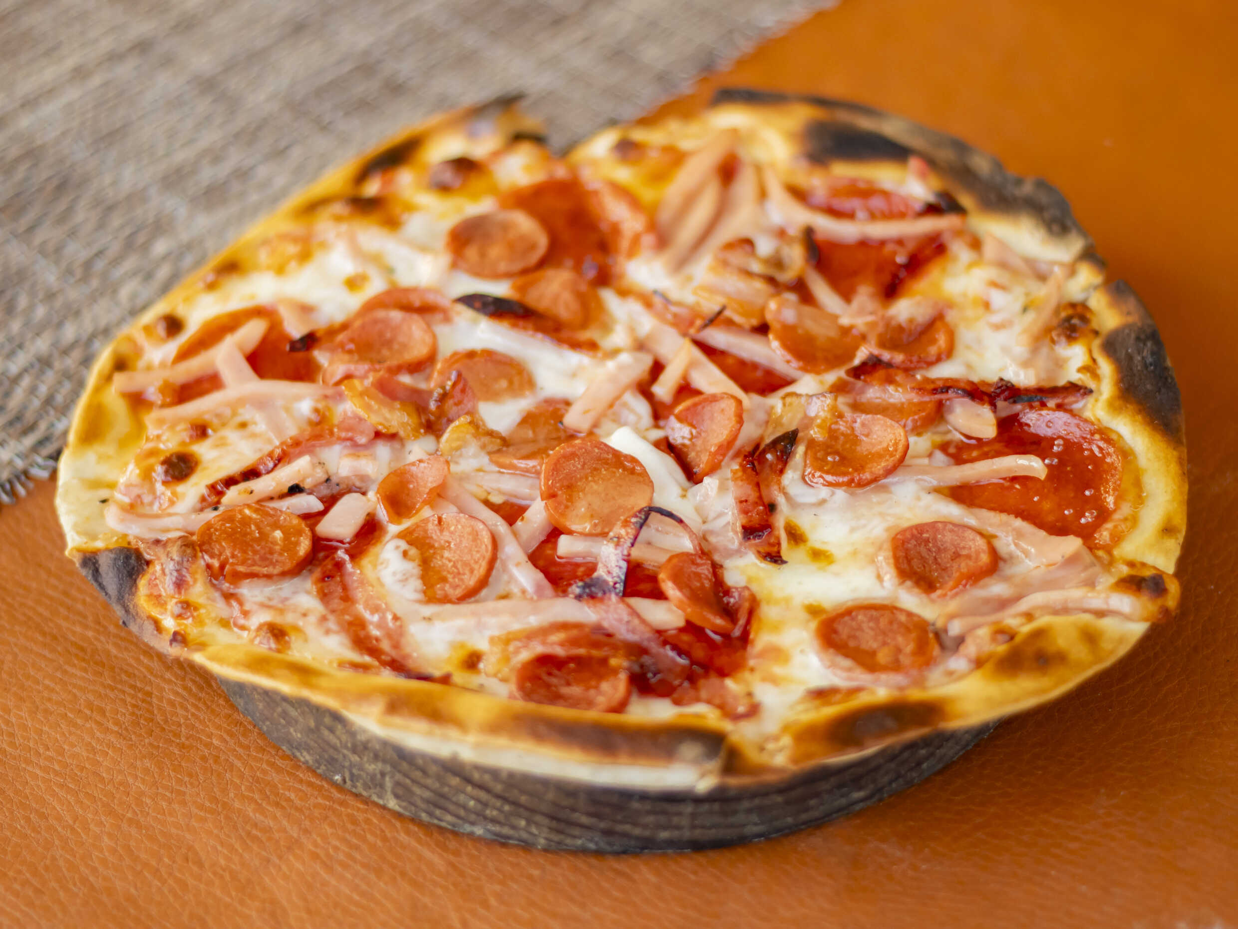 Base con peperoni, jamón, salami, salchicha y tocino. Chica.