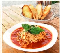 Salsa de tomate, queso ricotta, parmesano y perejil. Acompañado de pan con aceite oliva y ajo.