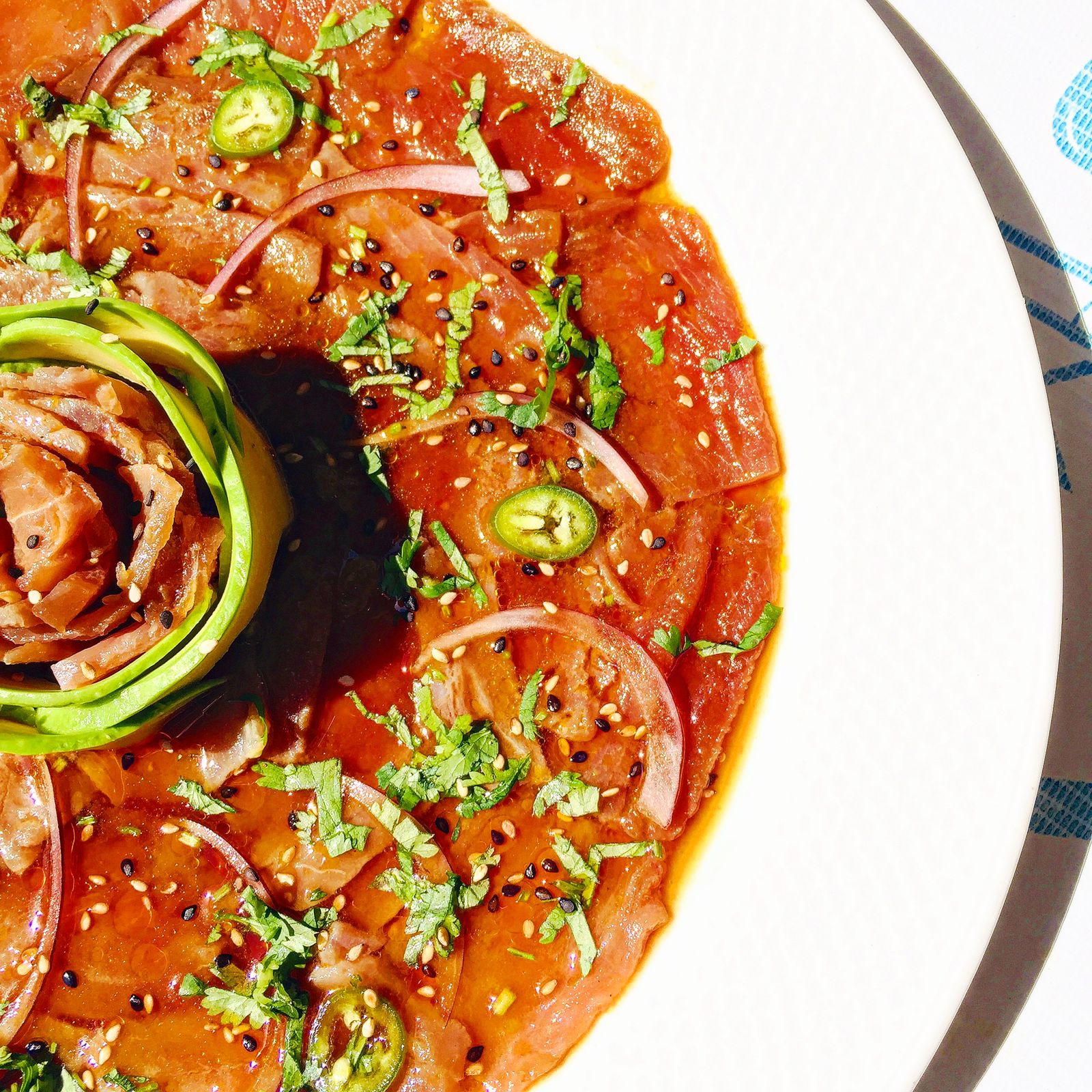 Tuna, habanero, cebolla, aguacate, ponzu.