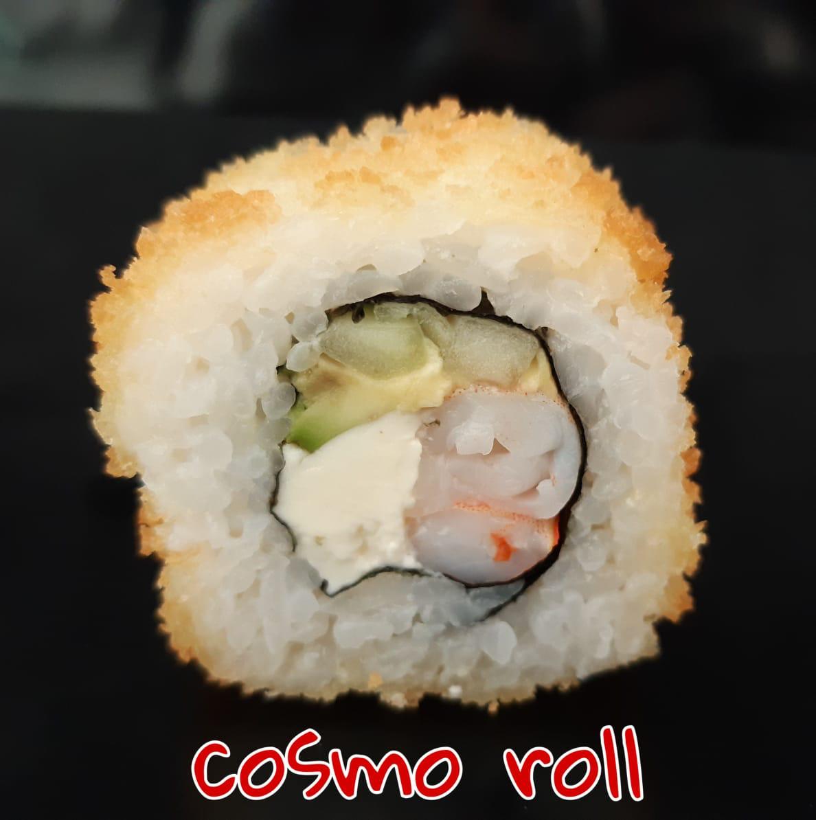 Camarón, queso crema, pepino y aguacate forrado en cangrejo bañada en salsa de anguila y yuzu.