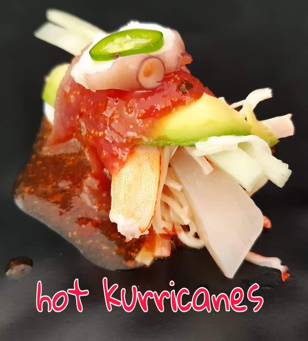 Camarón, callo, spicy kanikama, aguacate y pepino envueltos con atún con rodajas de pulpo y chile serrano además de una salsa especial.