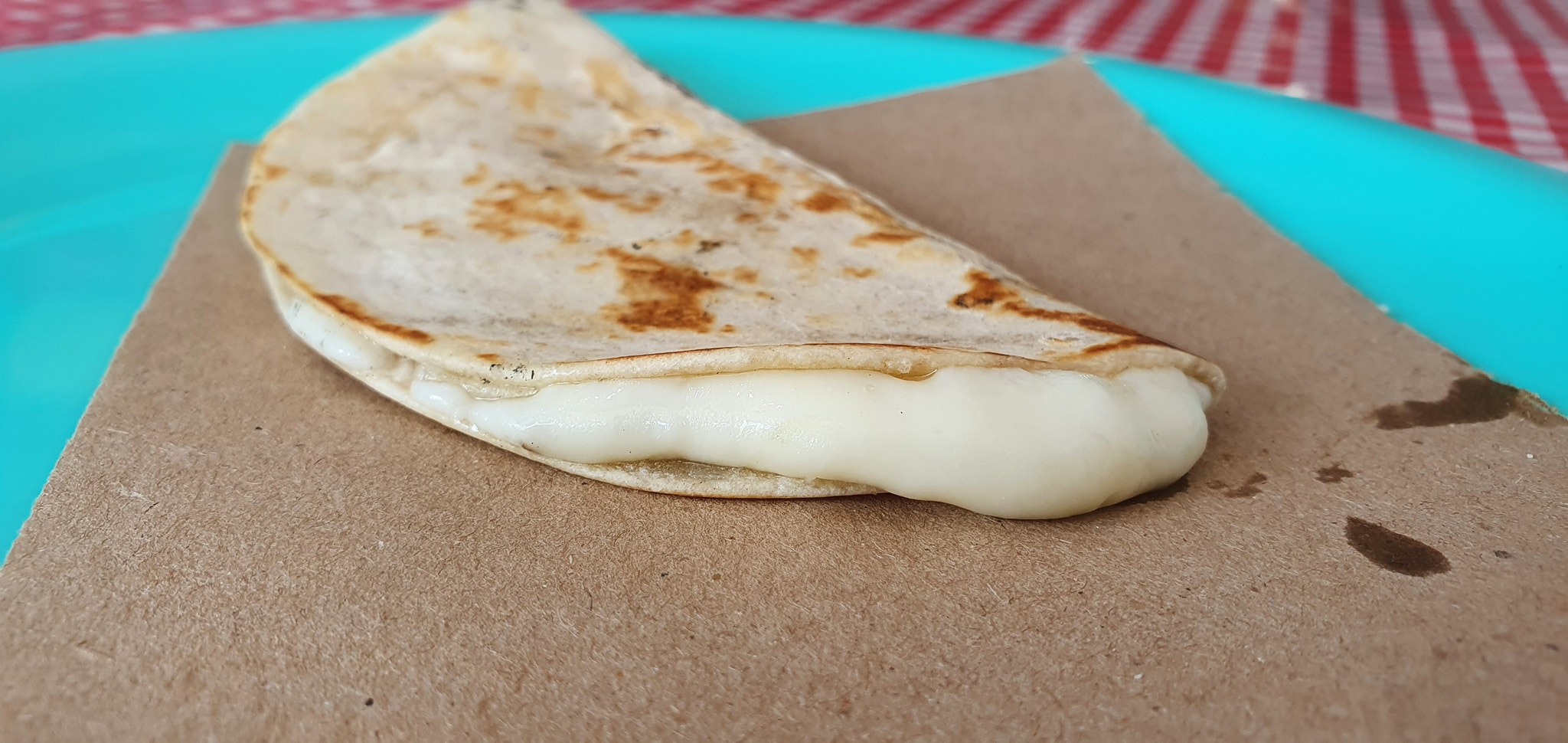 Tortilla de maíz o harina con queso gratinado. 20 g