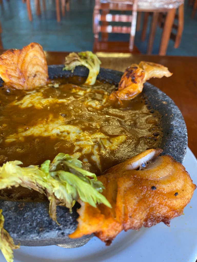 Pulpo, camarón y caracol mezclados con nuestra salsa cráter más un par de trozos de pescado y camarones con cabeza con un toque de queso gratinado. 355 g.