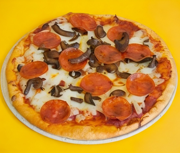Peperoni, Champiñon,Pimiento Verde y Aceituna Negra