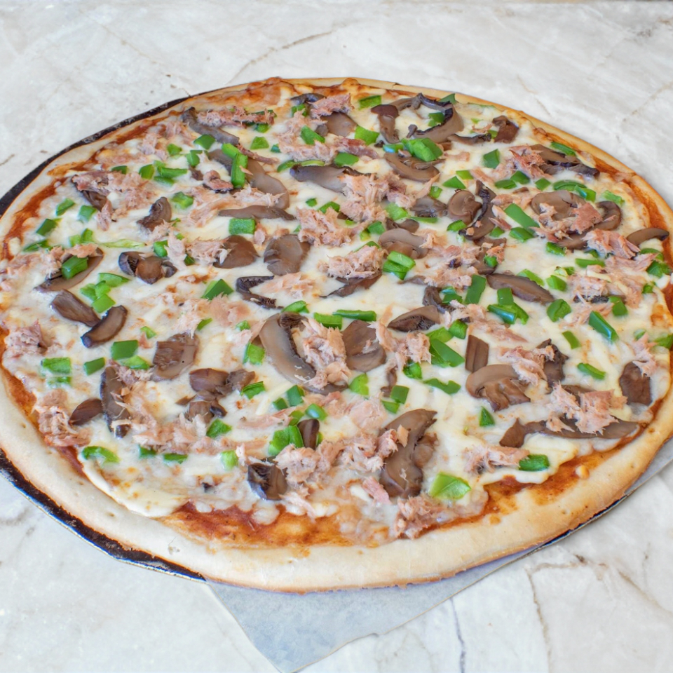 Pizza tradicional con 1, 2 o mas ingredientes, acompañada con una mezcla de quesos mozarella y monterrey jack 100% leche de vaca.