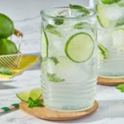 Pepino, to,ate, cebolla morada, camarón cocido o crudo, pulpo, clamato, salsa de la casa.