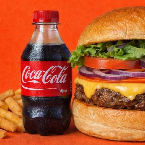 hamburguesa clasica acompañada de papas y un refresco de 250 ml