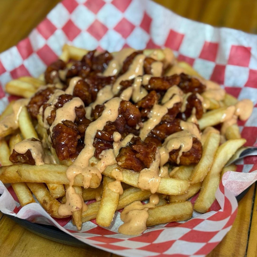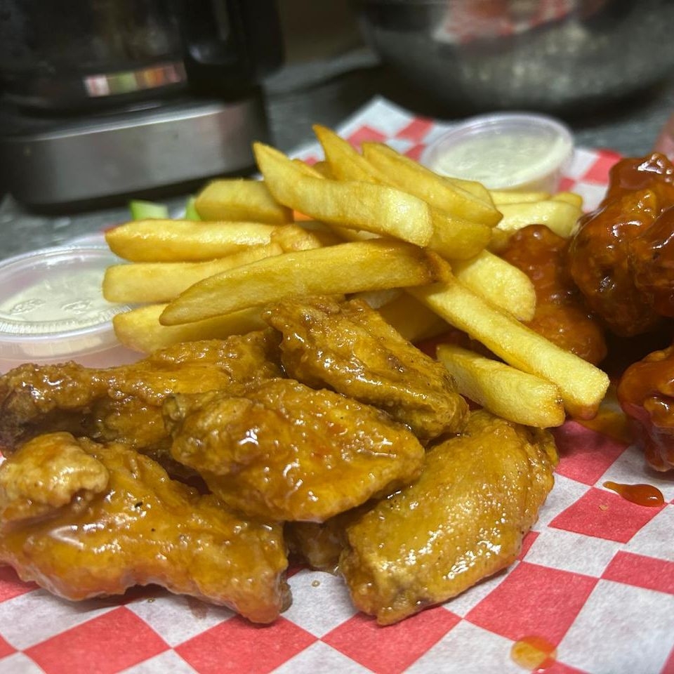 400g de papas acompañada de trocitos de pollo bañados en tu salsa preferida servidas con un aderezo ranch o chipotle ranch