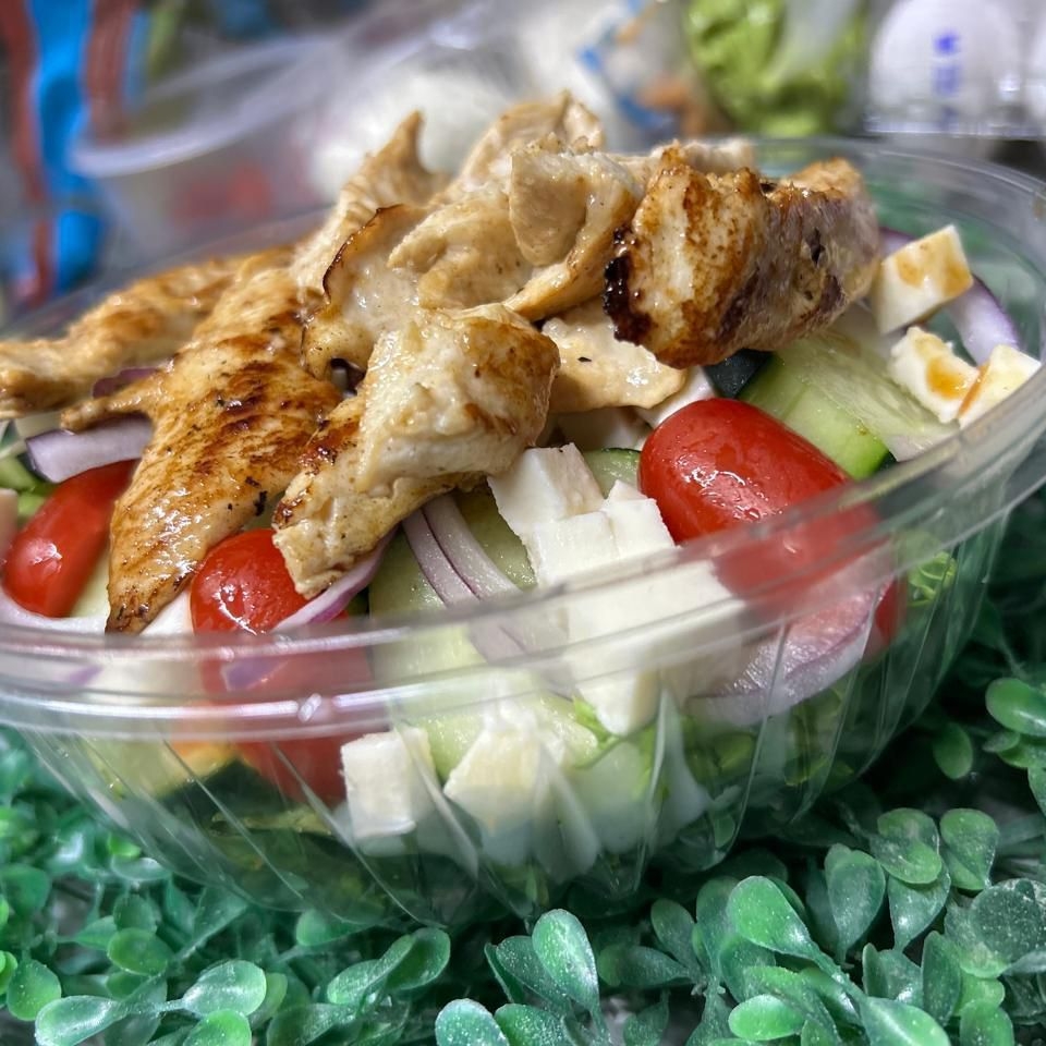 Mix de lechuga, tomate, pepino, zanahoria, queso fresco acompañada de pollo (a la plancha o empanizado bañado en tu salsa preferida)