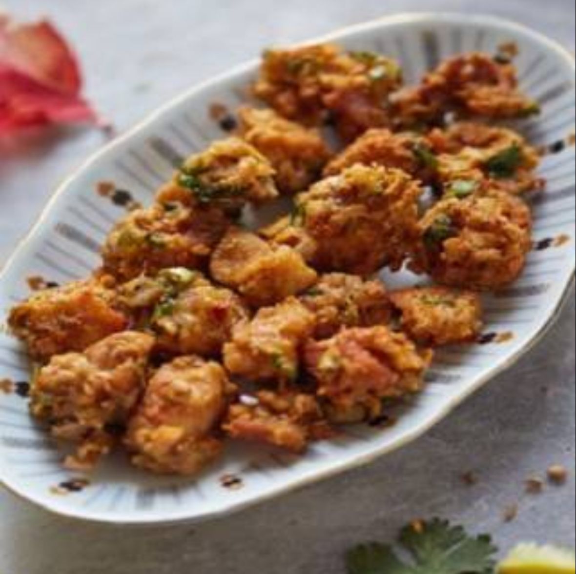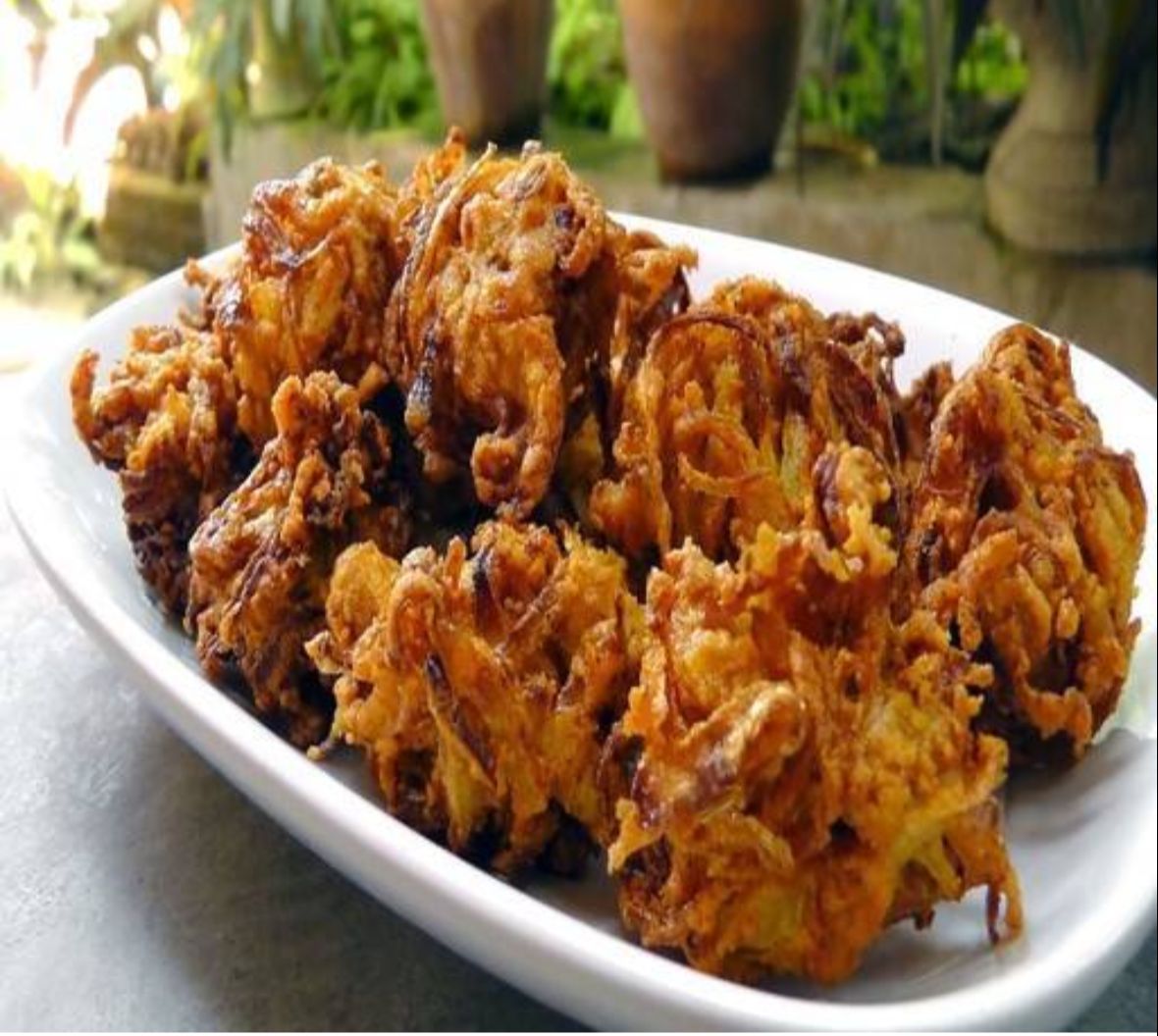 Rebanadas de cebolla marinadas en harina de garbanzo, especias de la India y frita en aceite vegetal. (6 piezas)