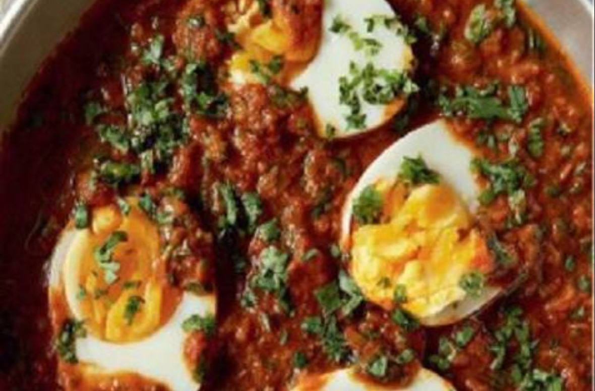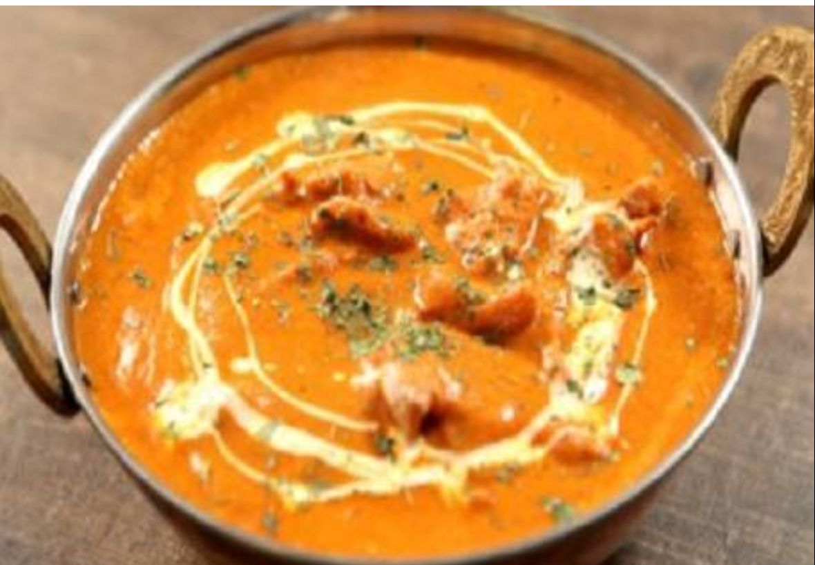 Pollo marinado deshuesado, yogurt, ajo, jengibre y especias muy rico con almendras mucho sabor, cocido en salsa de tomate crema color naranja.
