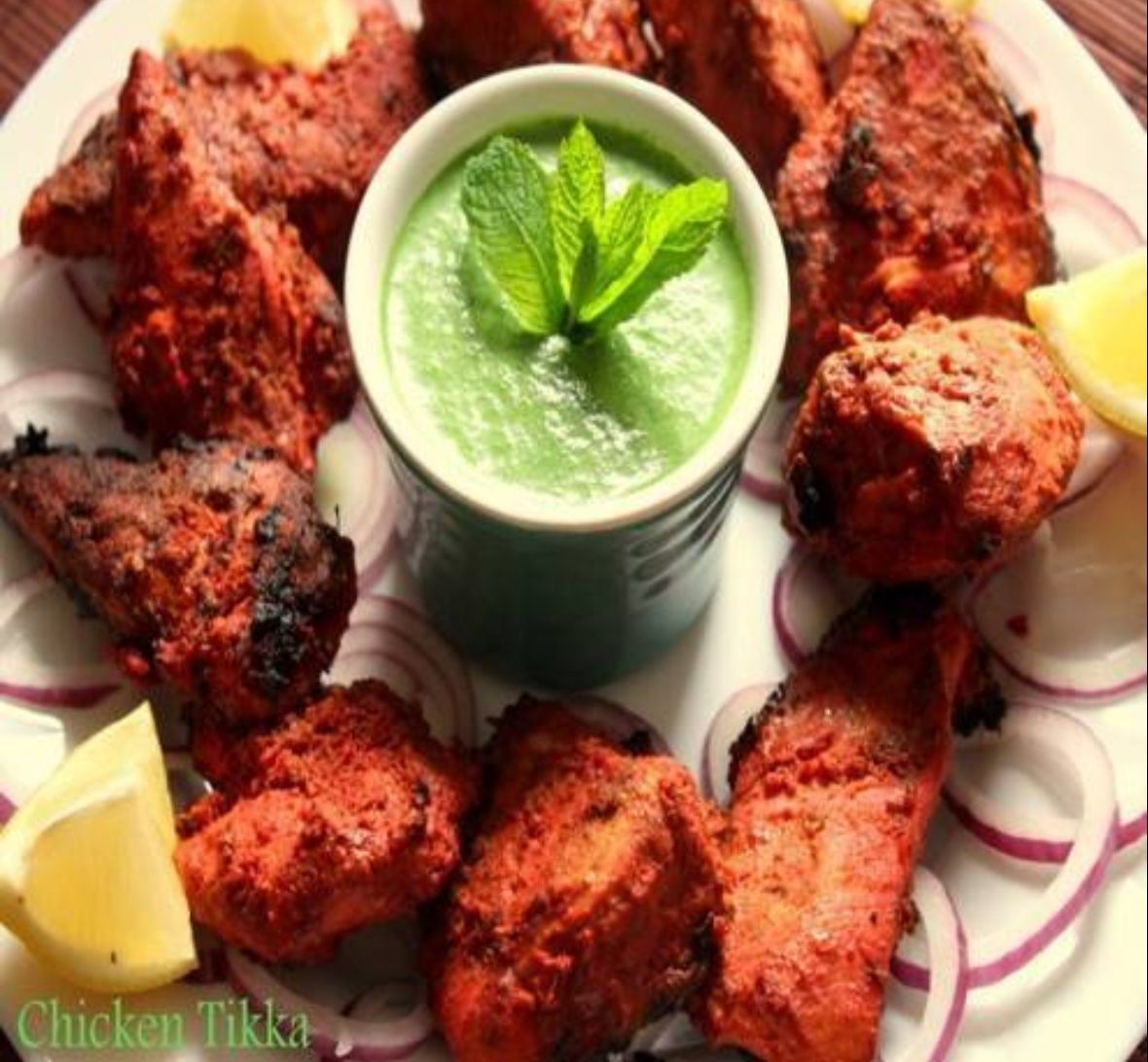 Pechuga de pollo marinado con especias de tandoori y cocinado al horno.