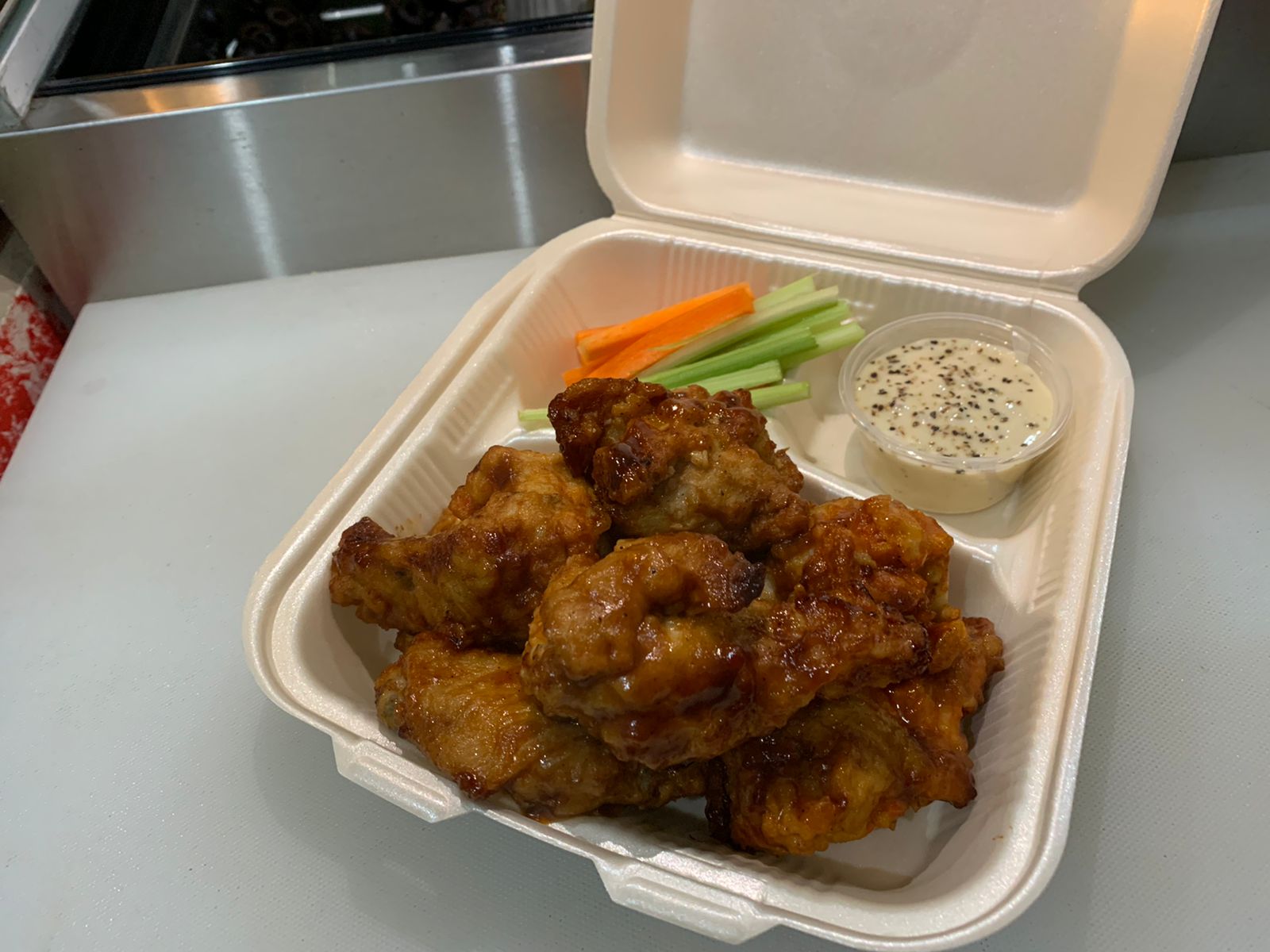 350 gr. de boneless de pollo con la salsa de tu elección, acompañados de crudites y aderezo ranch.