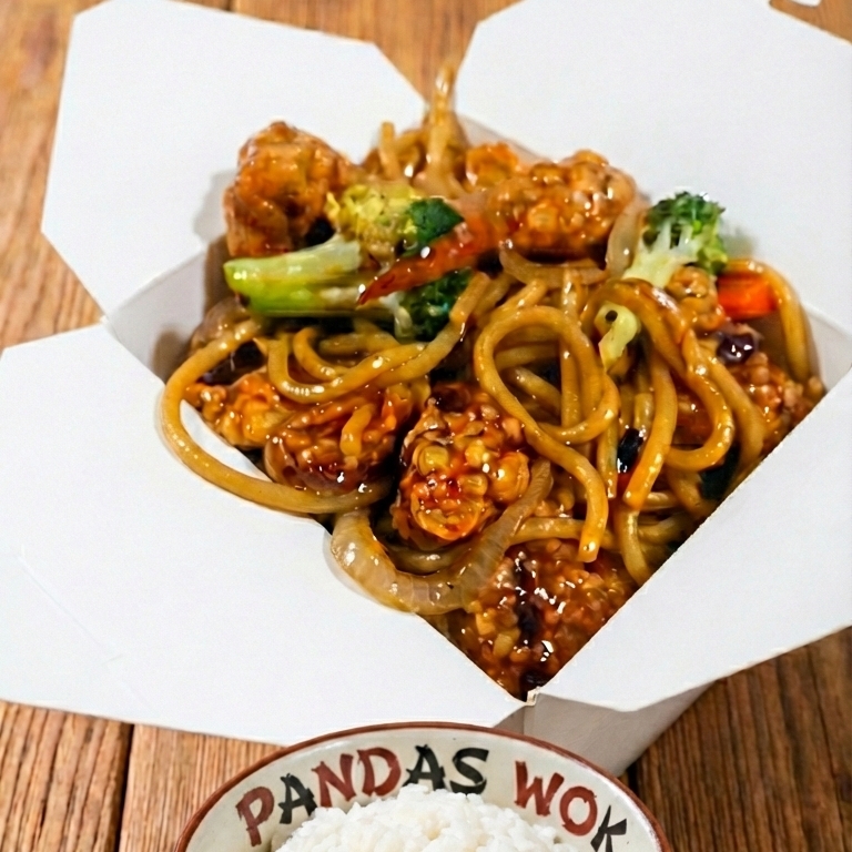 1Lt Pollo crunch, zanahoria, cebolla, apio, brócoli, salsa ostión. Salado con toque dulce. Acompañado de arroz blanco, 1lt aprox Chinese box.