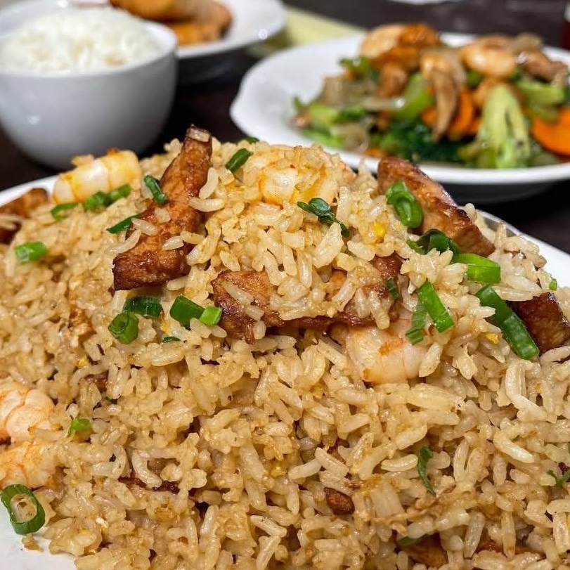 Pollo,res,camarón,cebollín, zanahoria,soya especial,chile tatemados