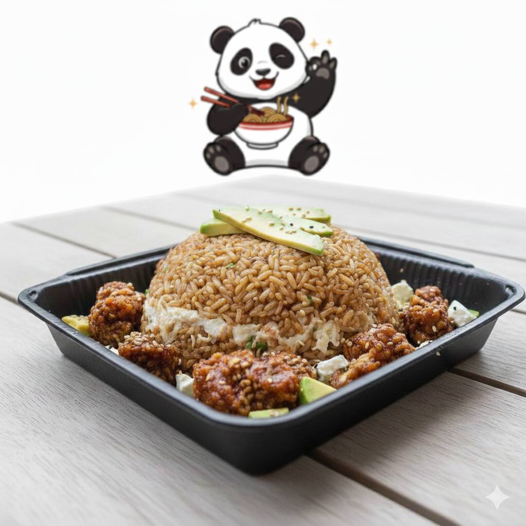 Arroz frito con pollo, cebollín, arriba pollo empanizado y topping de Tampico coronado con aguacate y Philadelphia. Salseado teriyaki y sriracha.