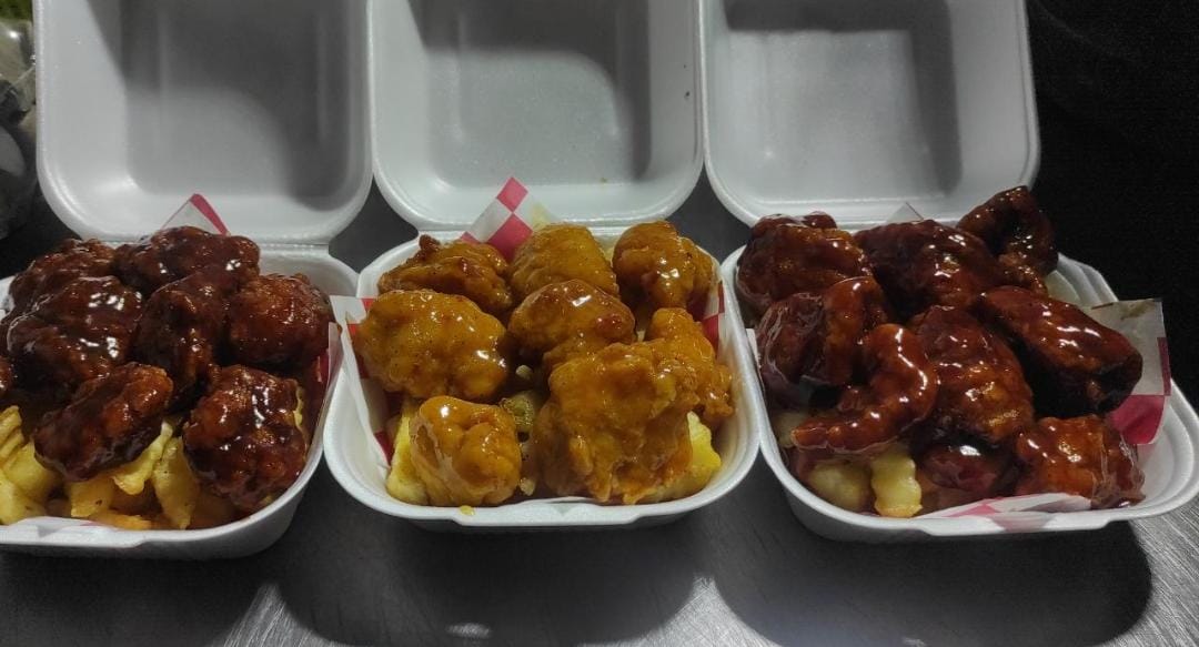 frijol, chorizo, tocino, cebolla, chile base de tomate con chipotle