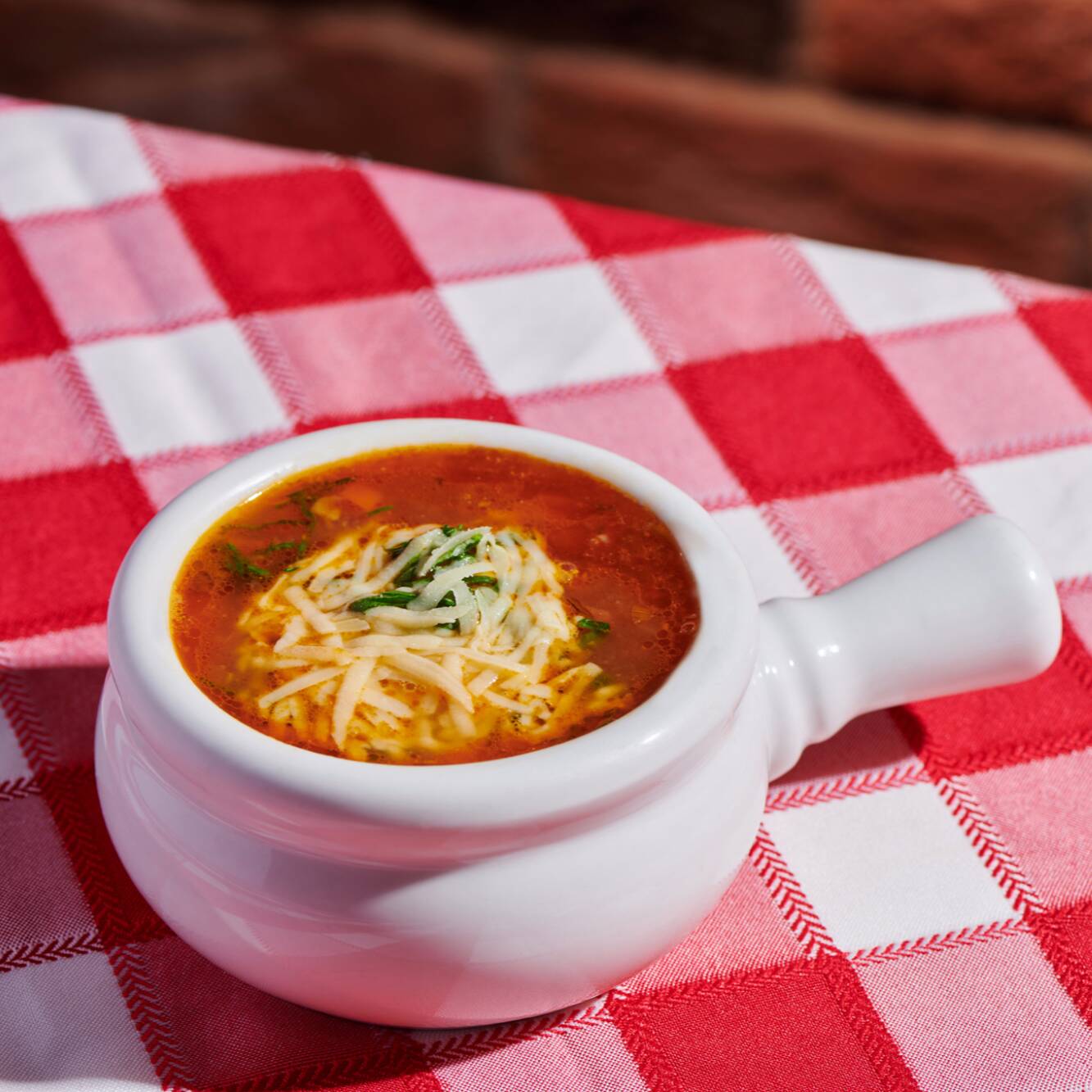 Salsa bolognesa, carne de res, queso parmesano y perejil.
