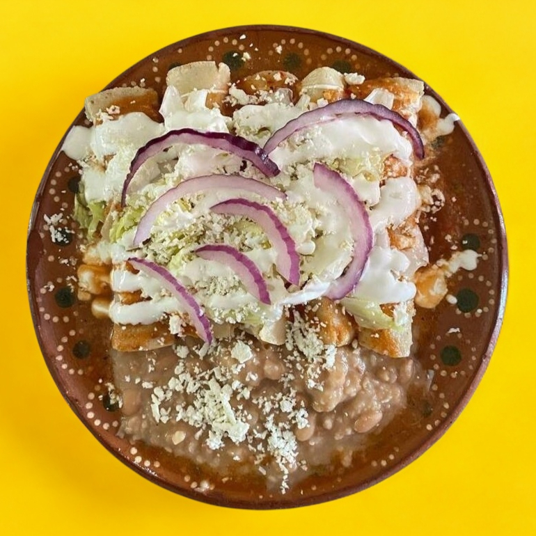 Chilaquiles rojos, verdes o blancos de habanero con frijol, huevo o pollo. Elige tu opción preferida.