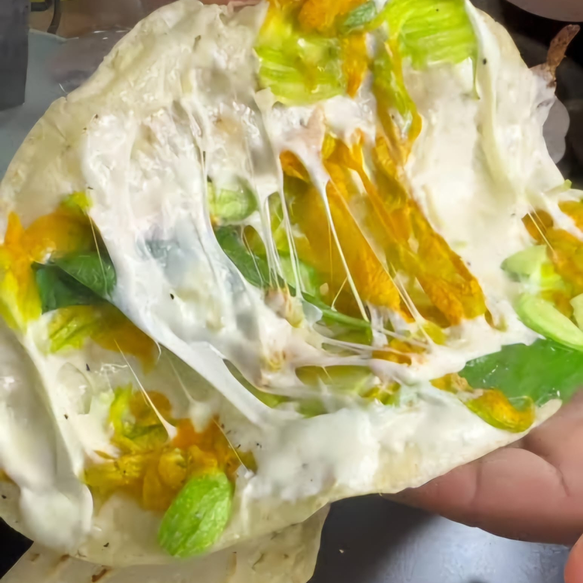 Quesadilla de Flor de Calabaza con Chicharrón Cruj