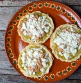Platillo personal. Una tortilla de maíz hecha a mano con chicharrón prensado adobado y queso. Se envía aparte lechuga, crema y salsas aparte.