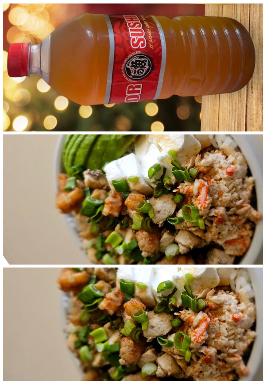 Preparado con arroz frito y pollo teriyaki.
