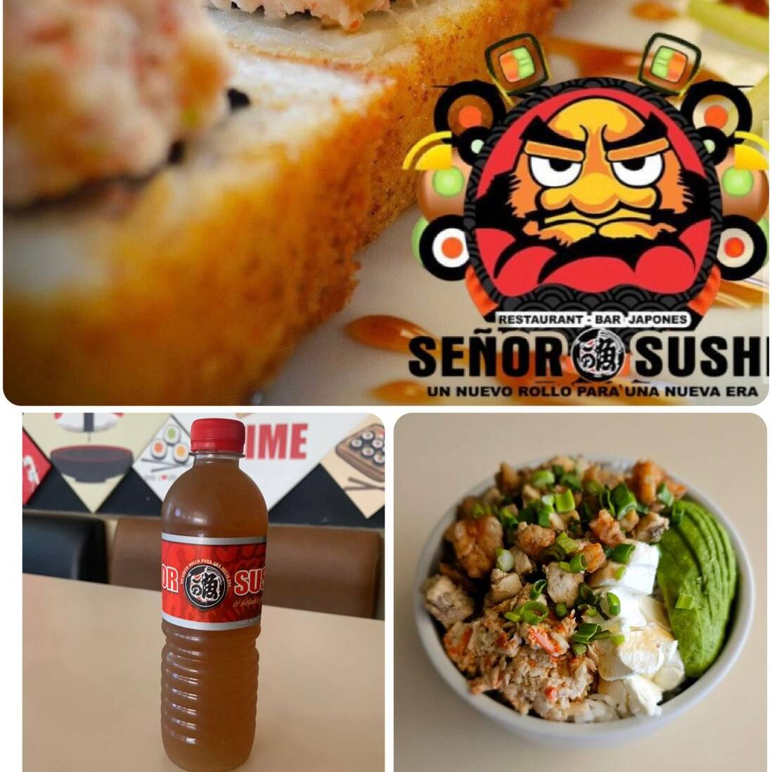 Preparado con arroz blanco al vapor con res de 300gr, camarón, pollo, Tampico, queso philadelphia, aguacate, cebollín y salsa anguila.