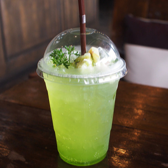 Bebida refrescante sabor manzana verde y perlas explosivas. (Vaso 16oz)