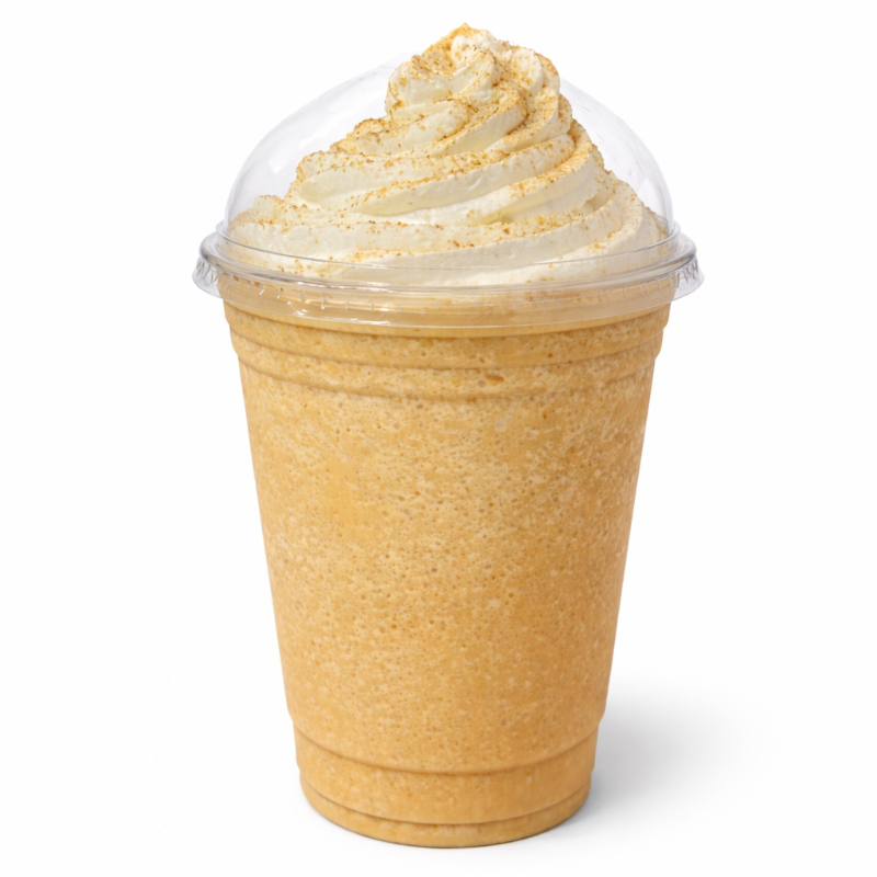 Delicioso, dulce y cremoso, hecho con mazapan original, decorado con crema batida y polvoreado con mazapan. Vaso 16oz. (No contiene café)