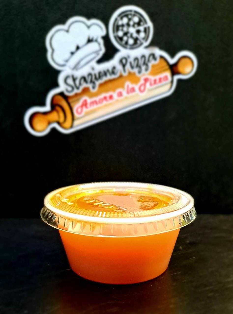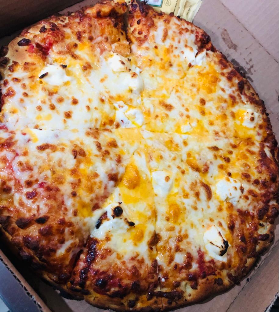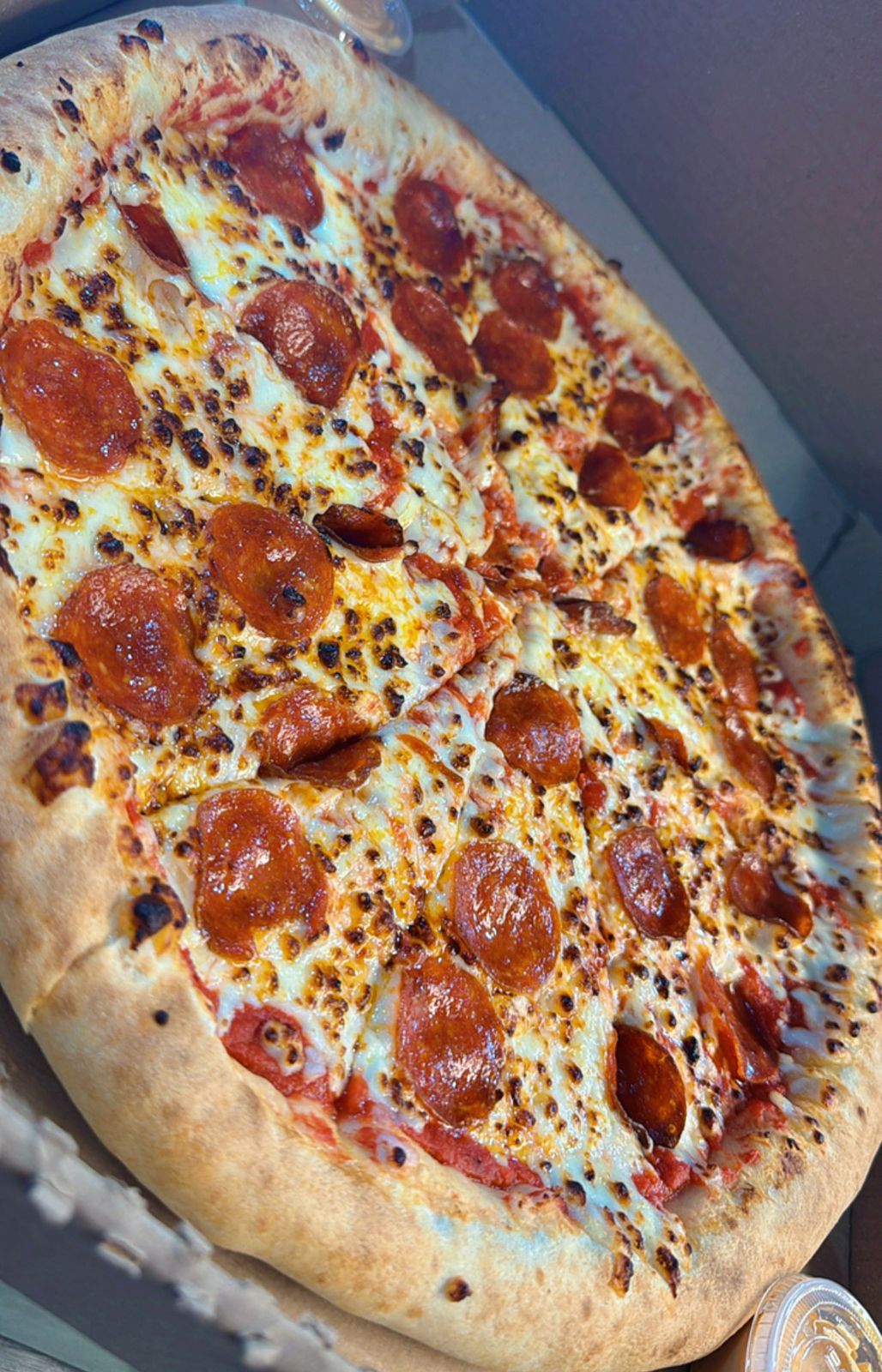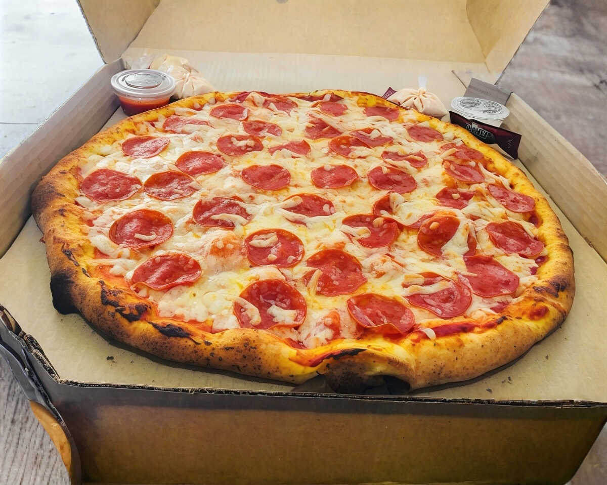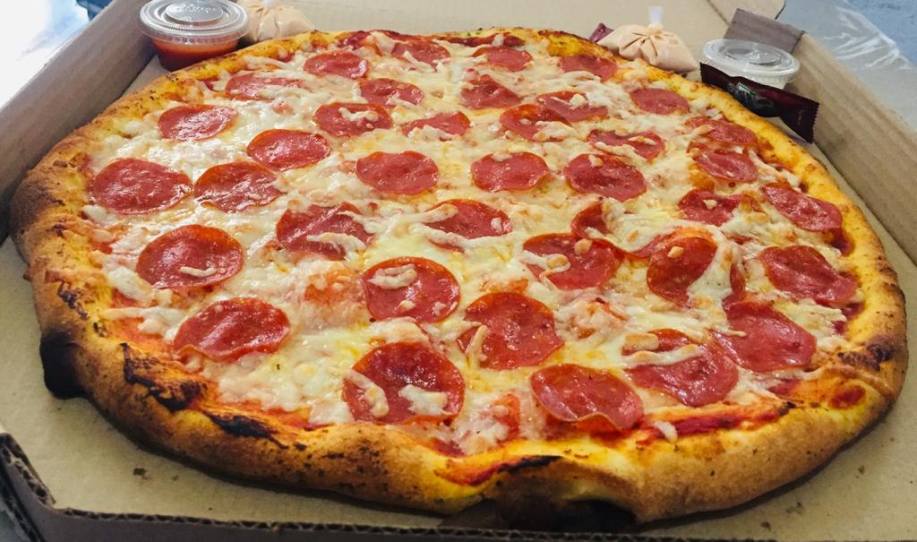 Pizza de 8 rebanadas. Queso Mozzarella, Salsa de Tomate, pepperoni y Extra Queso. Incluen aderezos y chile quebrado