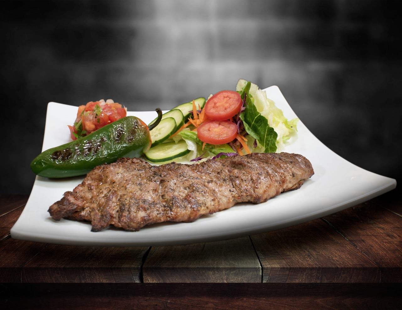 Bisteck de Sirloin en salsa ranchera y frijoles