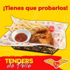 Nuggets, Palomitas o tenders de pollo y papas fritas
