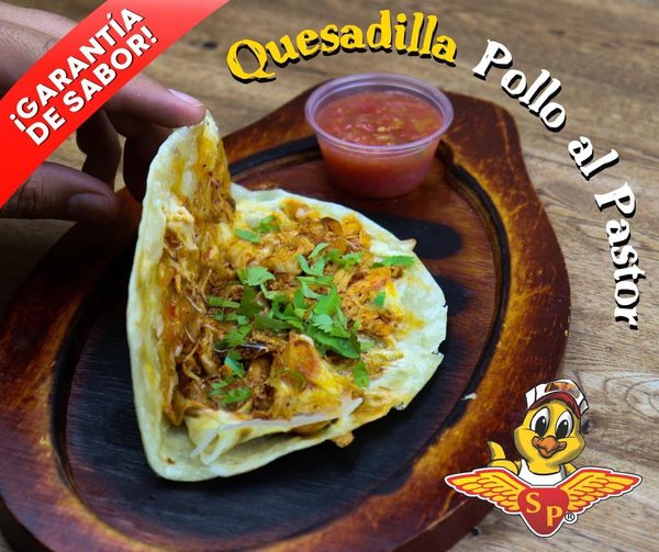 Pollo asado entero, 1 quesadilla gigante de harina, guacamole y 1 acompañamiento