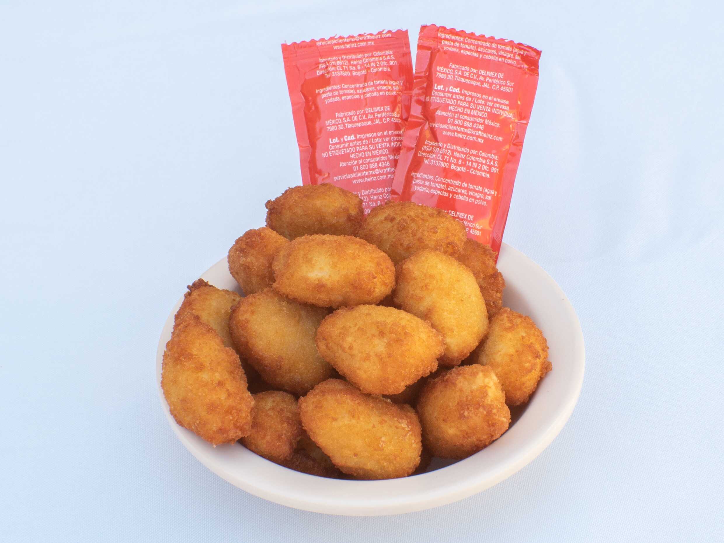 100 gramos de Palomitas de pechuga de pollo, empanizadas y fritas, ideal para los peques.