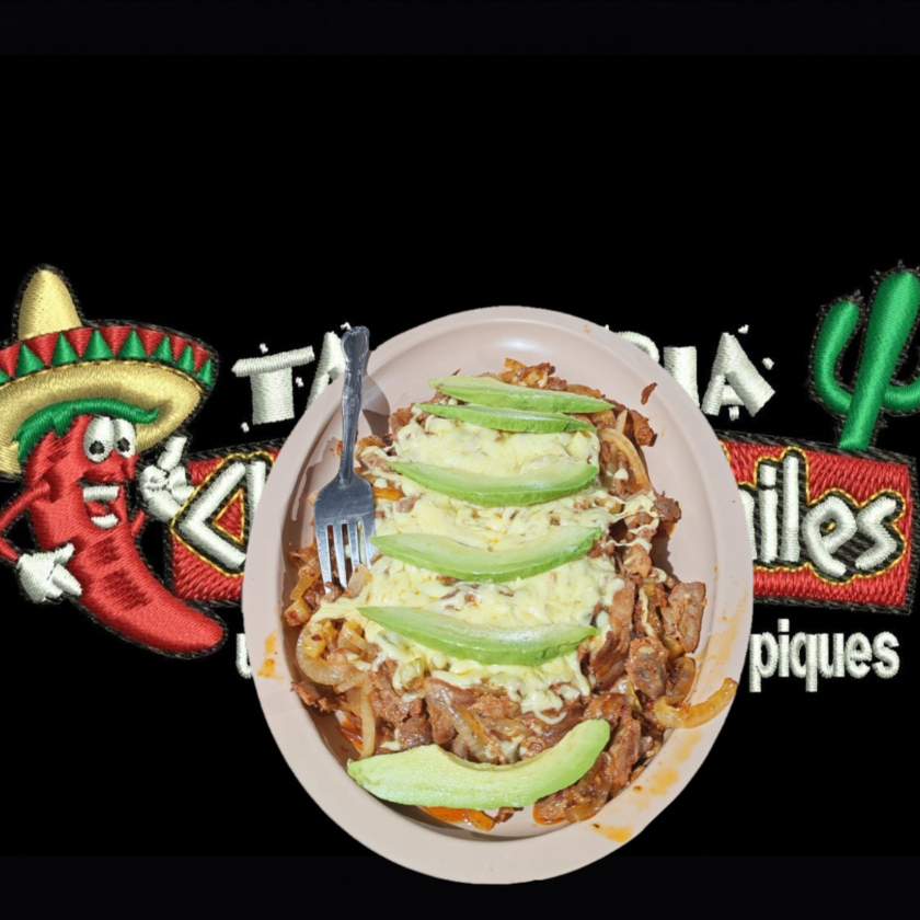 PASTOR, BISTEC, LONGANIZA, CHULETA. JAMON, TOCINO, AGUACATE, QUESO Y TORTILLAS.