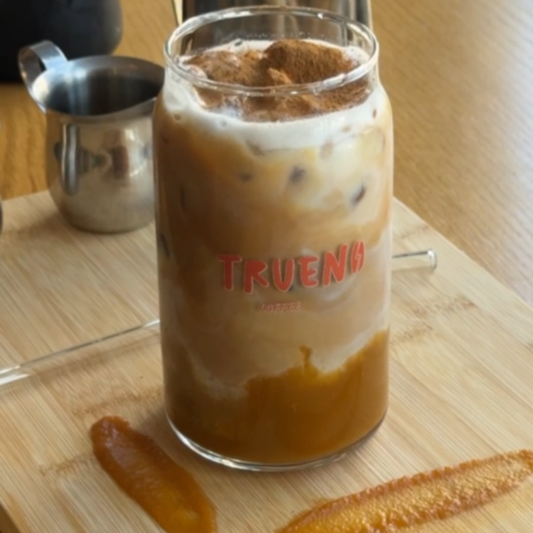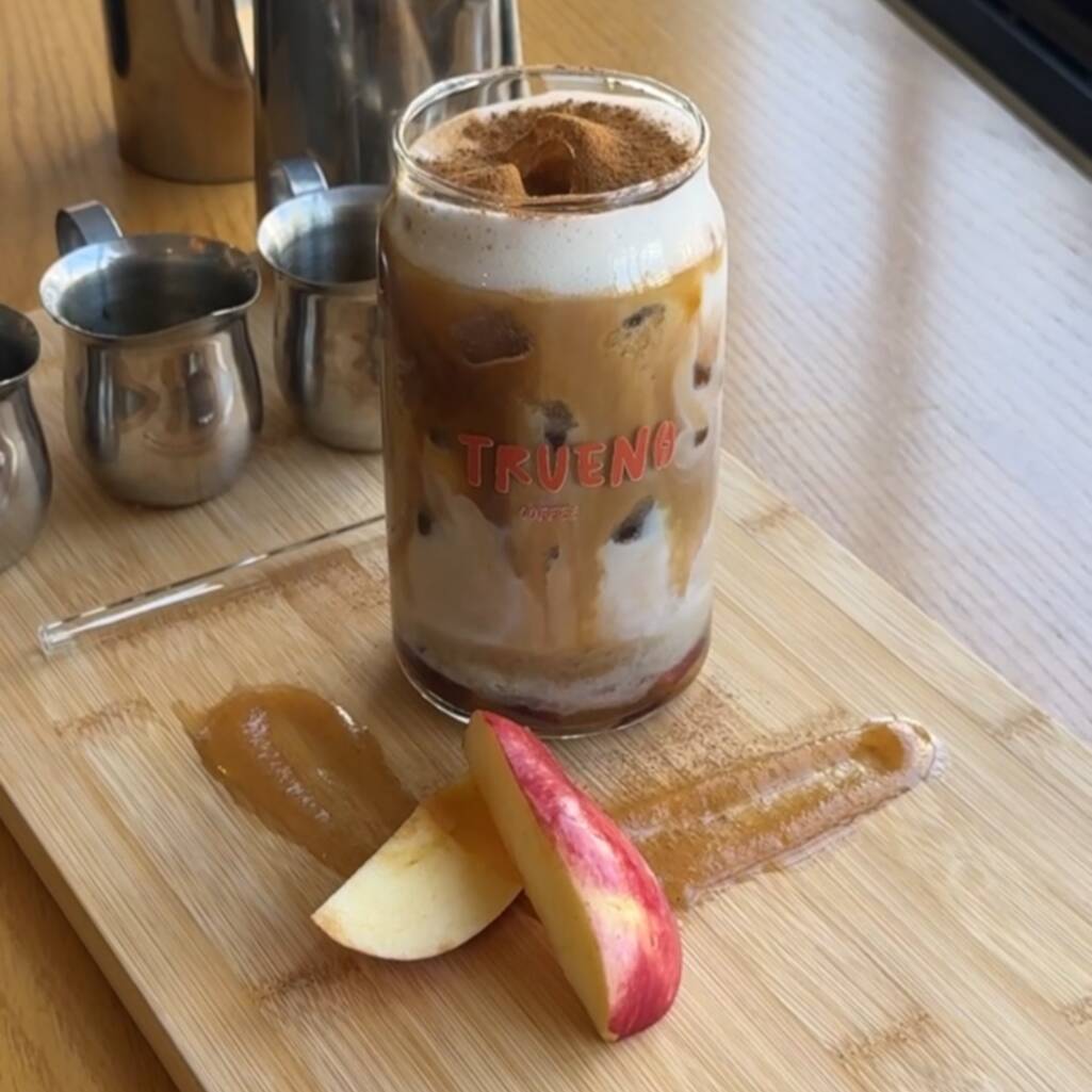 Oleo de manzana, leche, espresso, jarabe de manzana y canela.