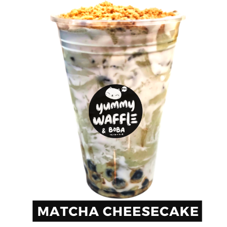 Tapioca, matcha latte, queso crema y galleta de vainilla.