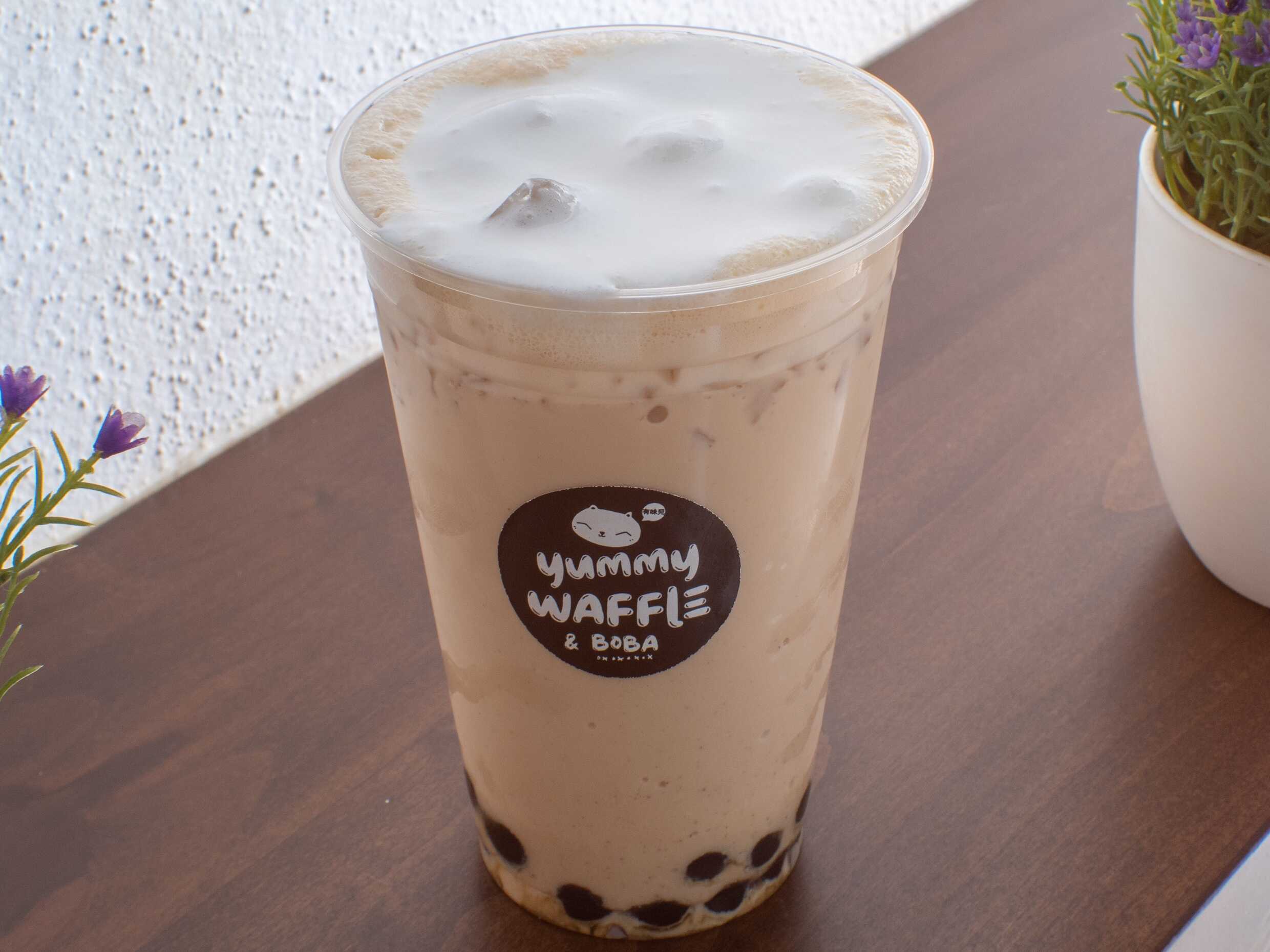 Perlas de tapioca, infusión de té originaria de tailandia y espuma de crema.