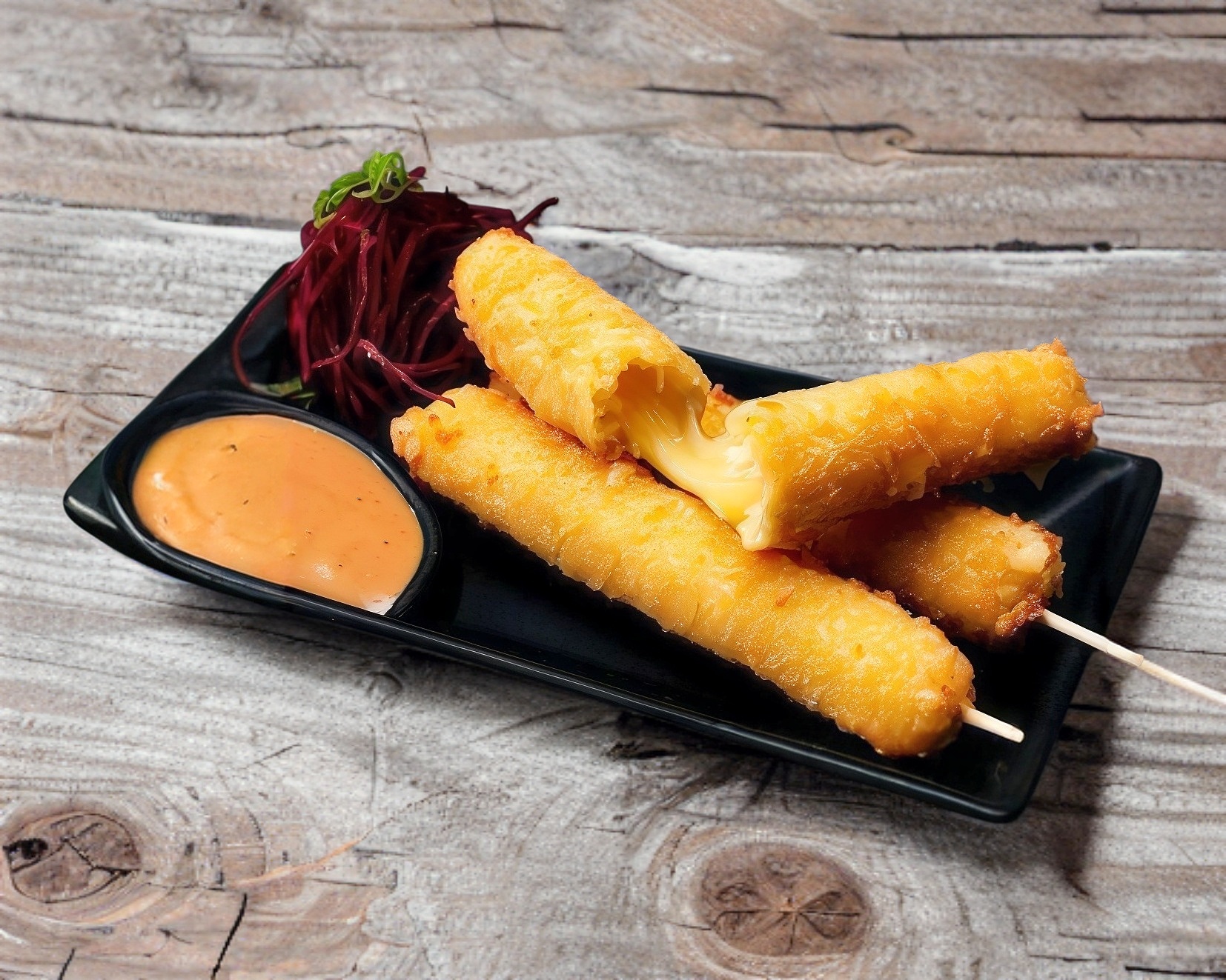 3 piezas de queso monterrey empanizadas con panko.