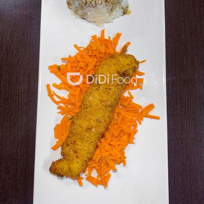 Phila, aguacate, res y pepino, encima trozos de pollo empanizados.(no es posible cambió de ingredientes)