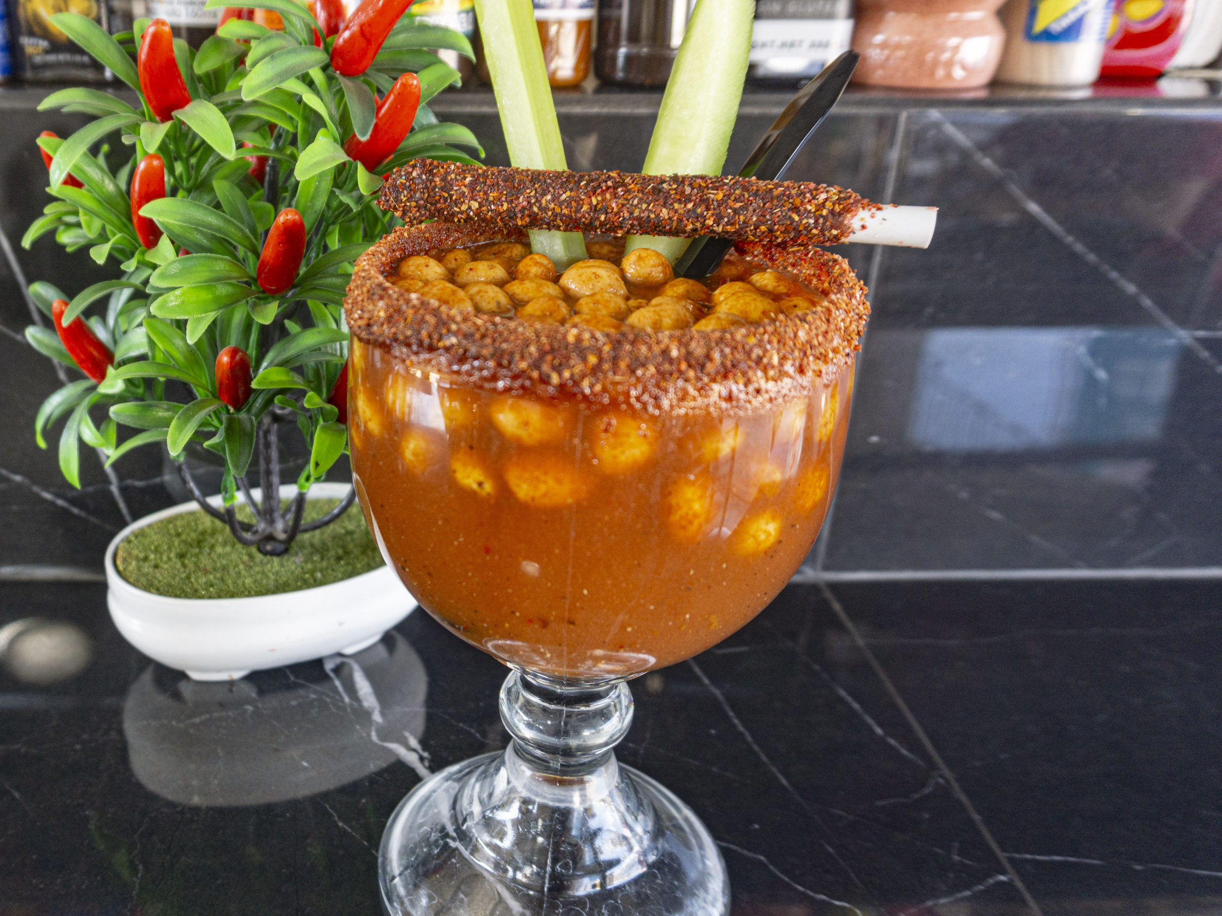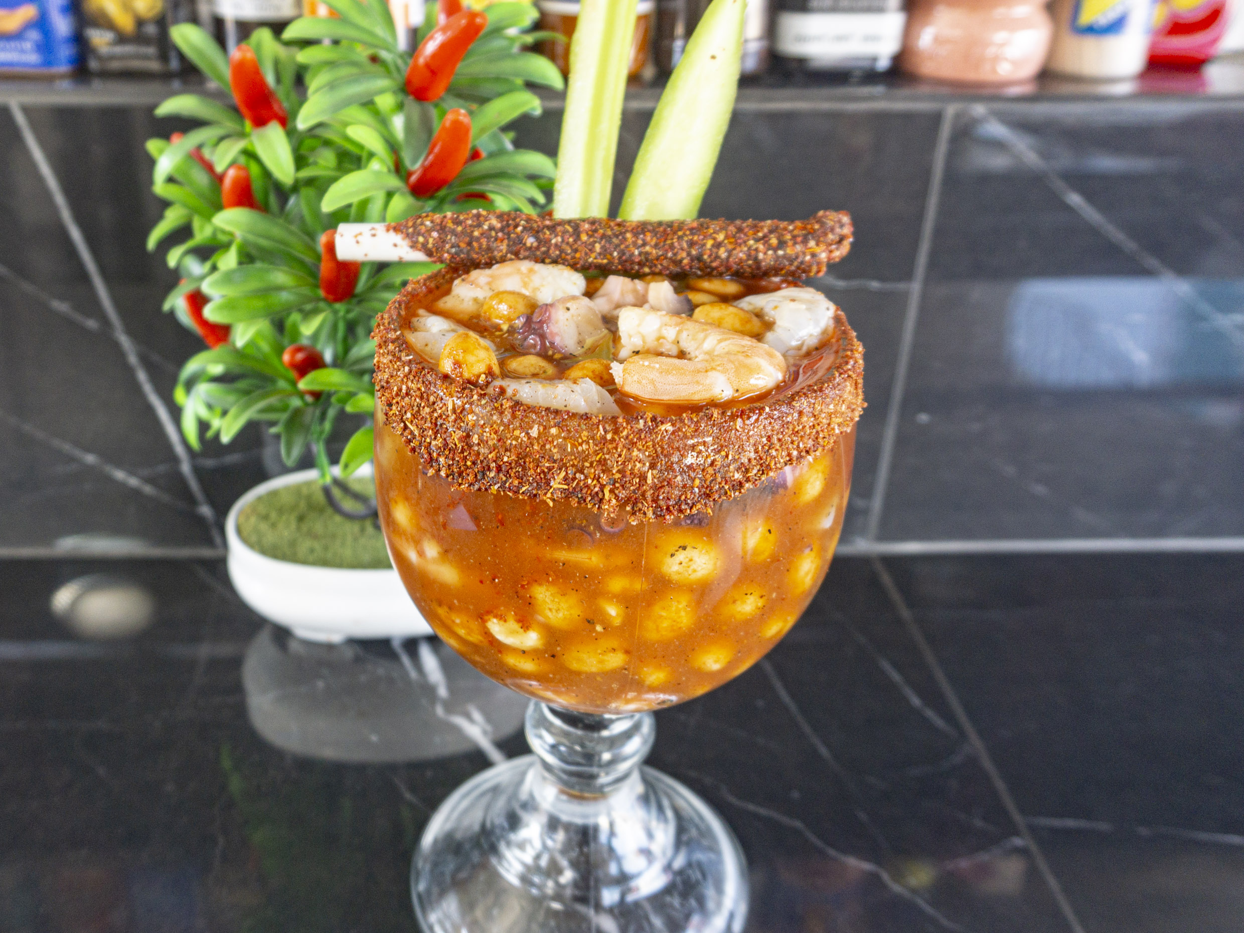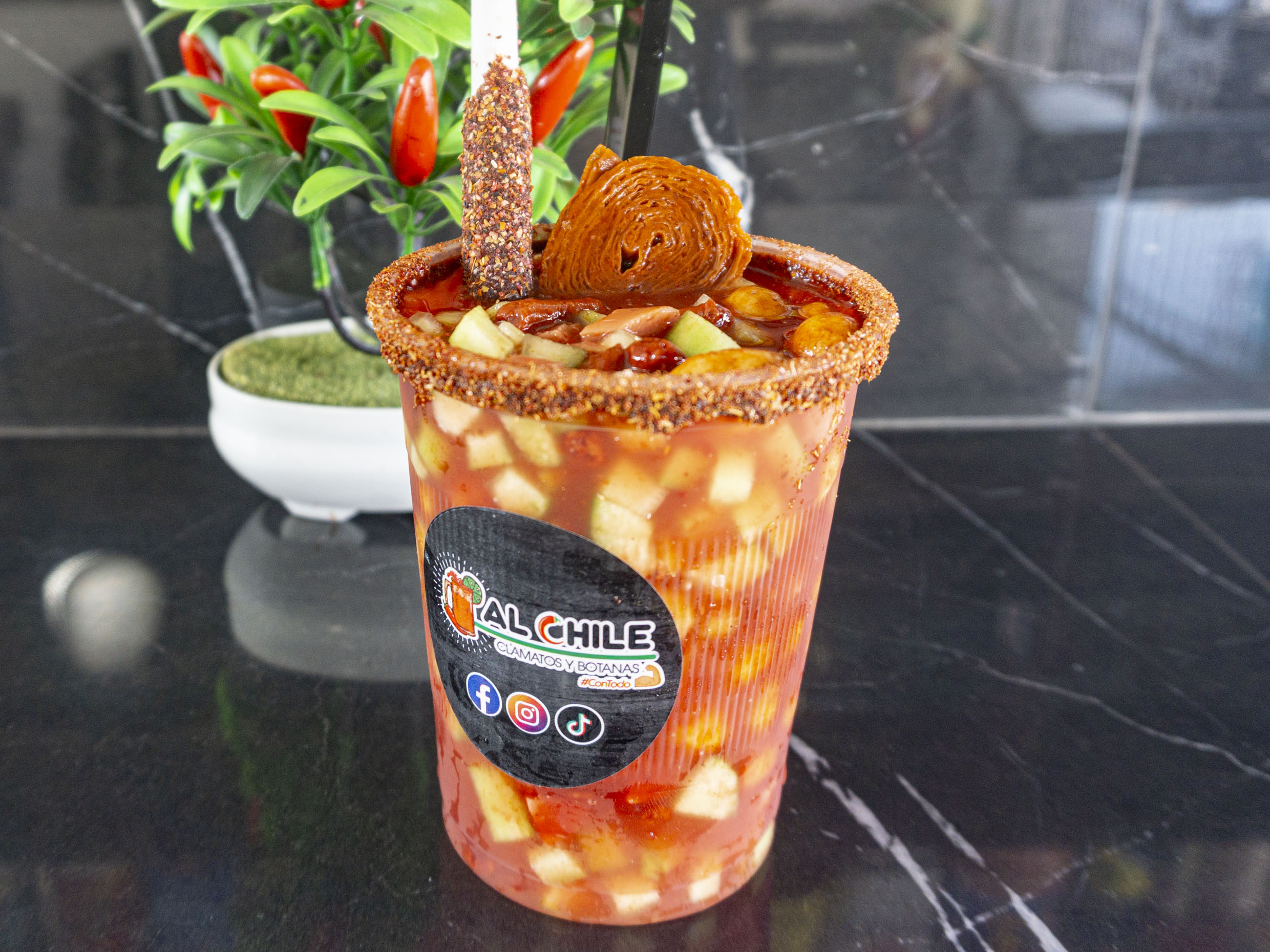 Clamato especial con salsas.