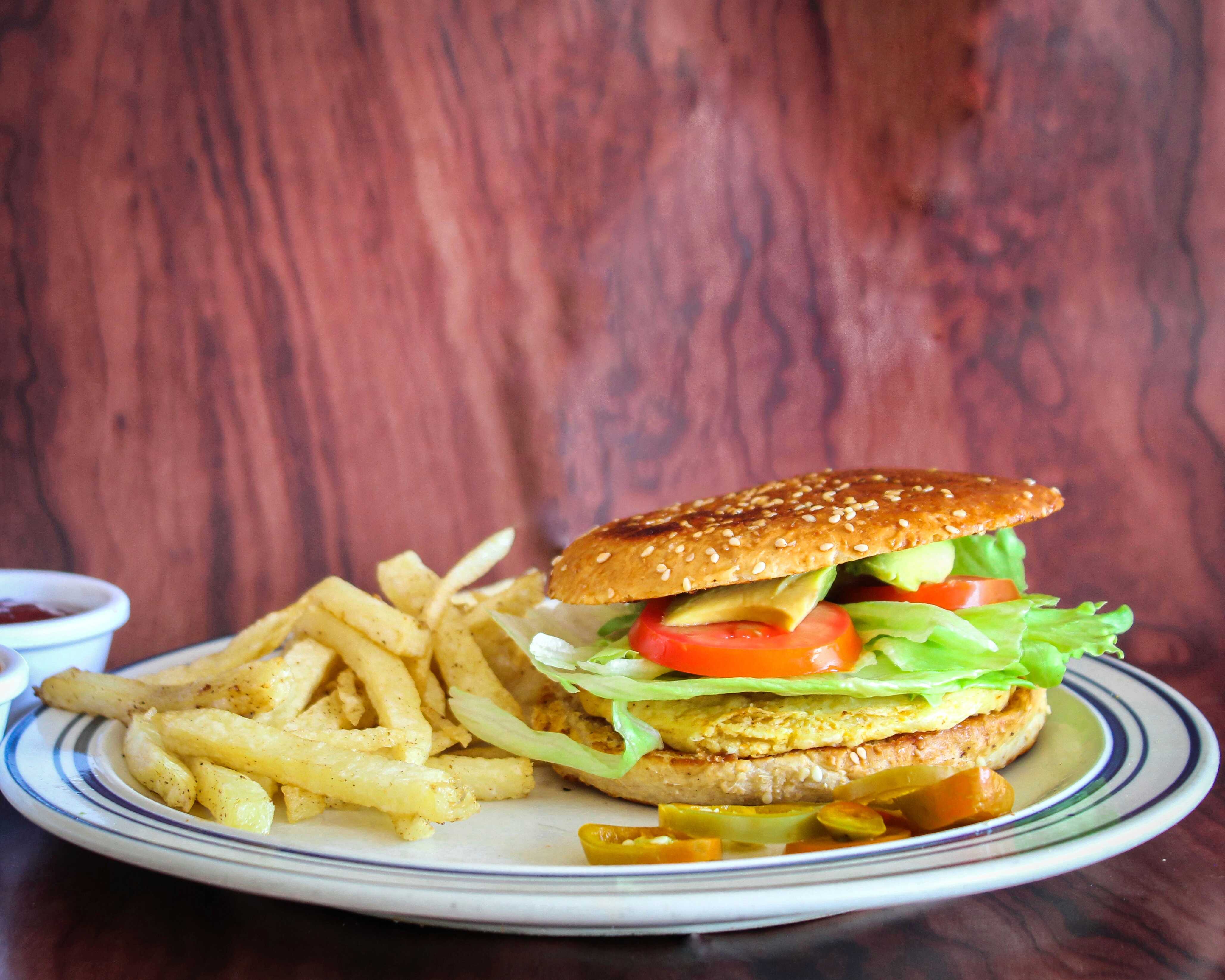 Pan de hamburguesa integral con Pechuga, jamón y queso.