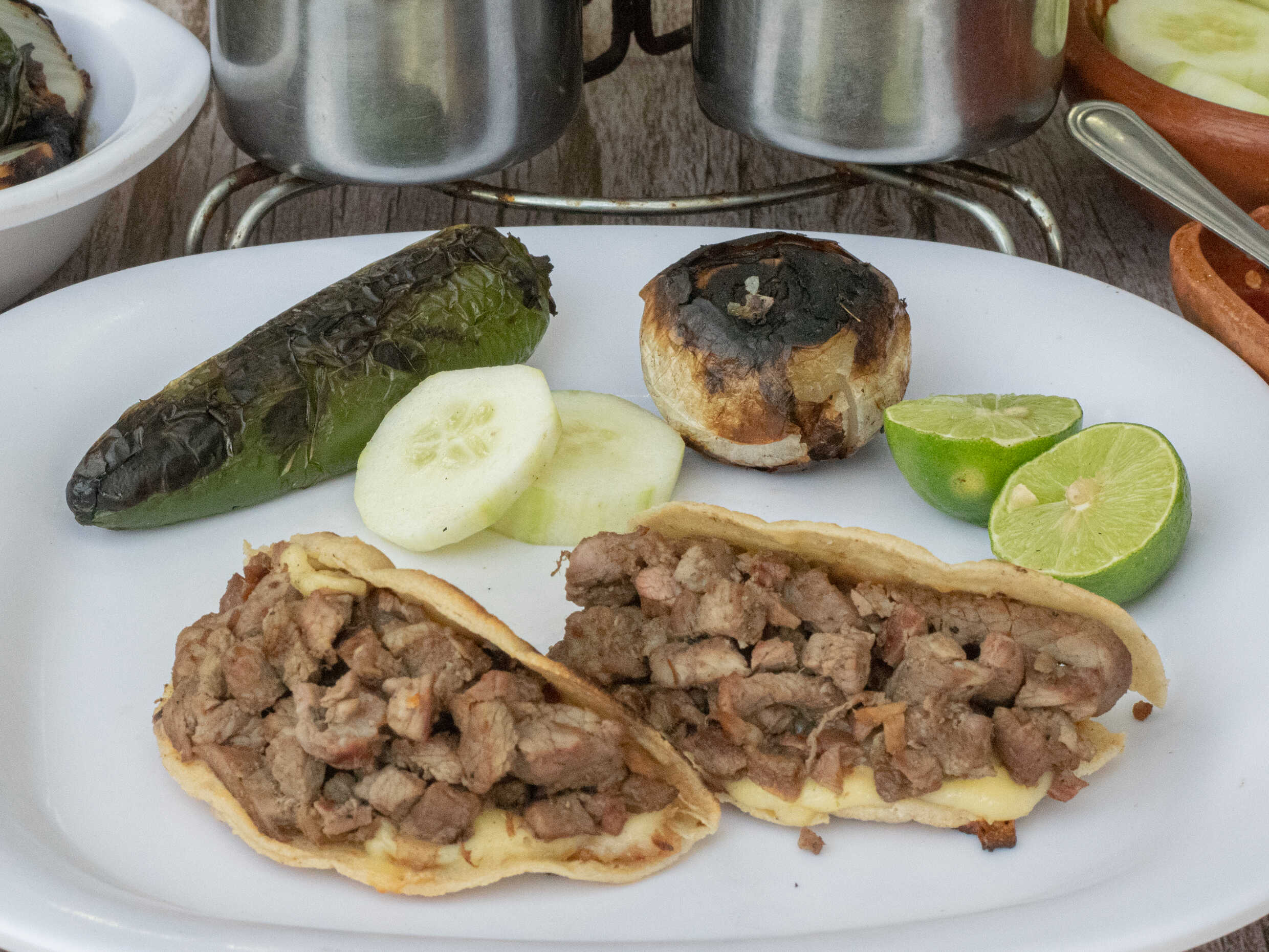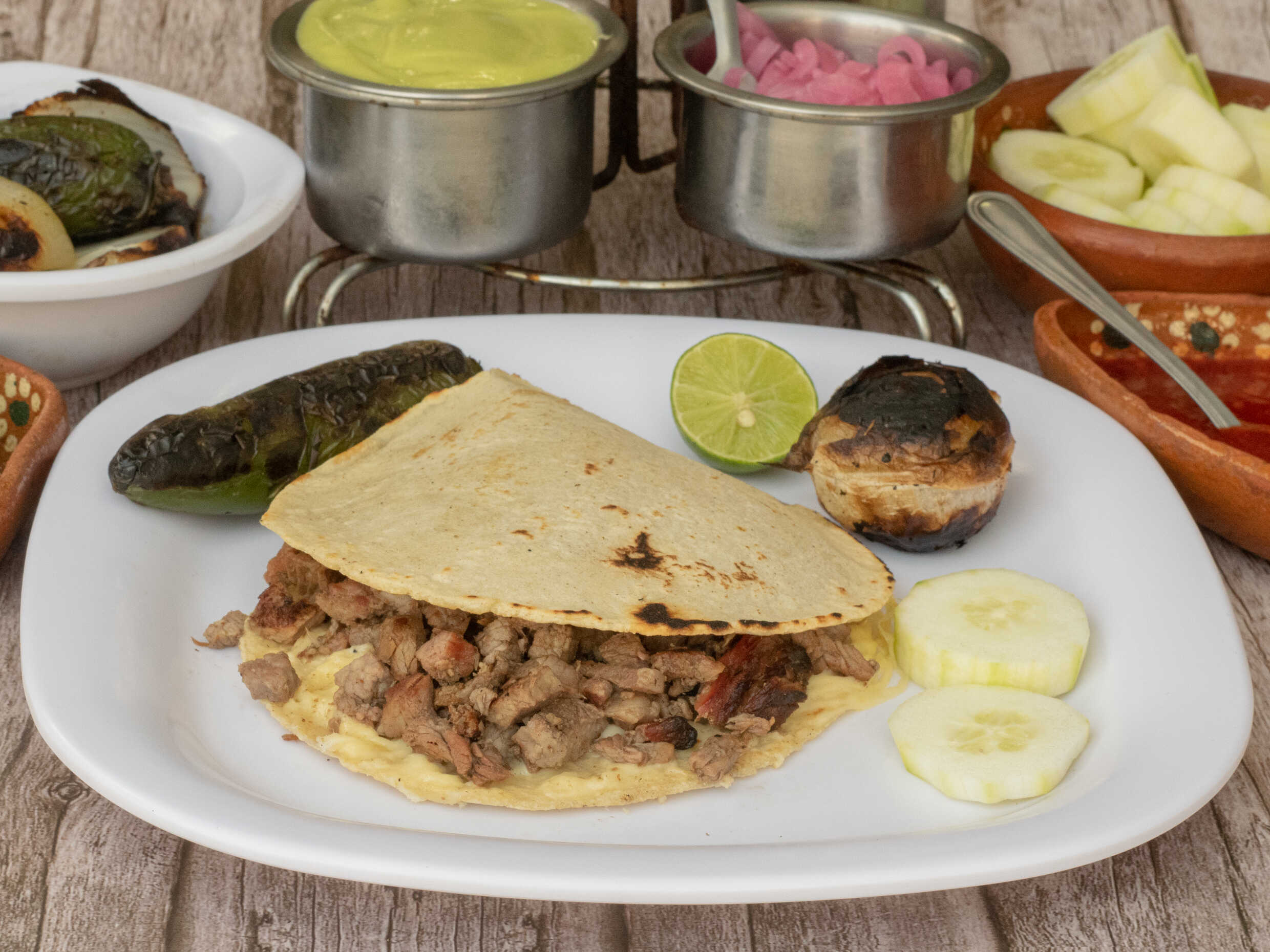 Deliciosa combinación de carne y queso fundido, servida en tortilla sencilla o doble, a tu elección