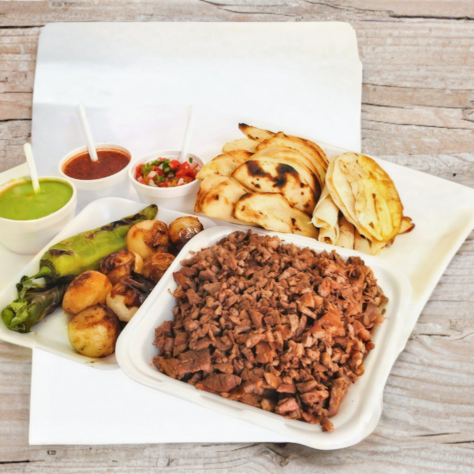 Orden de Carne Asada + Orden de Cebollitas Asadas + Salsa y Guacamole + Orden de Tortillas + Orden de Tacos de Frijol