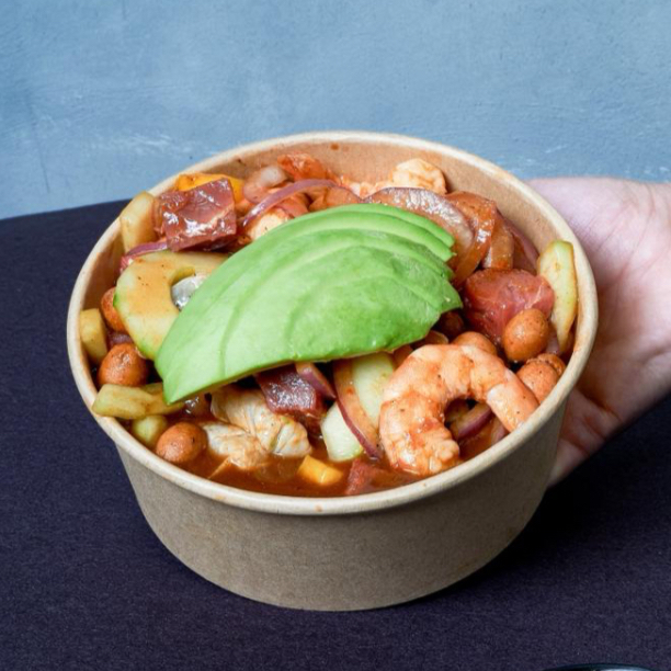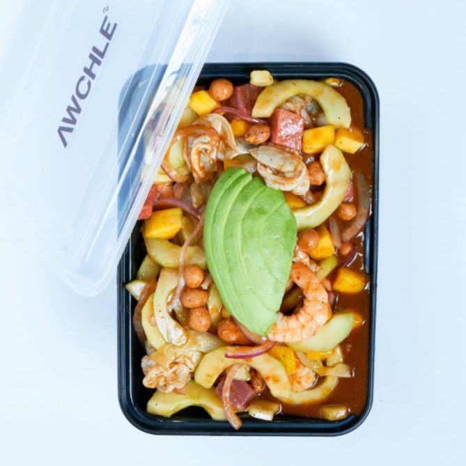 Arma tu awchle, elige 3 porciones de tus proteinas favoritas, 4 toppings y tu salsa favorita
