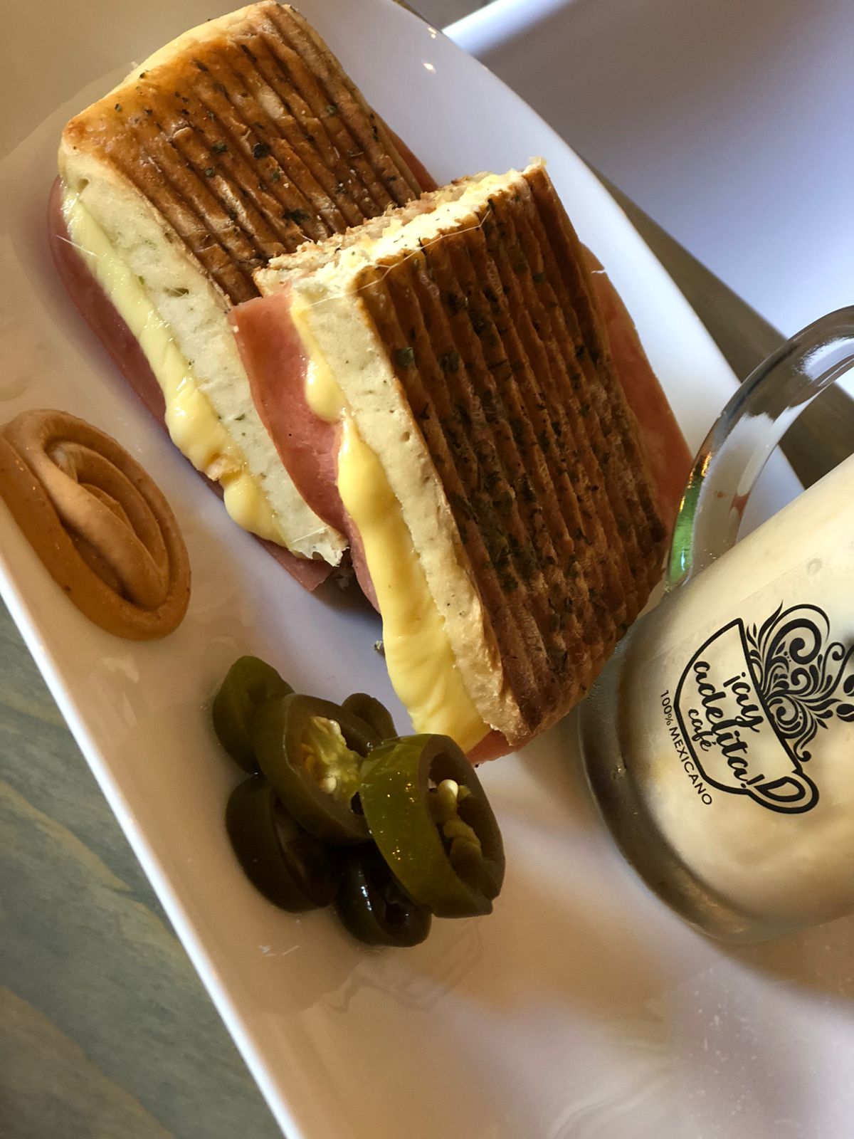 PAN DE FINAS HIERBAS CON JAMON Y QUESO GRATINADO, CON ADEREZO CHIPOTLE