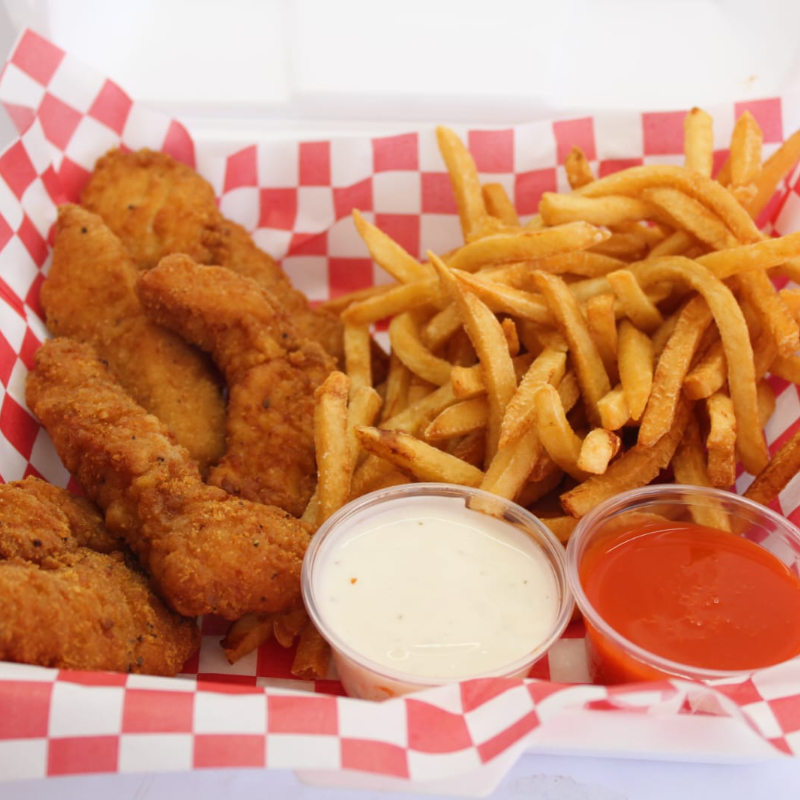 Tenders Receta de la casa, Acompañados de papas y 2 salsa y/o Aderezo , Bbq, Bbq Mango Habanero, Ranch, Mostaza Miel o salsa Picante