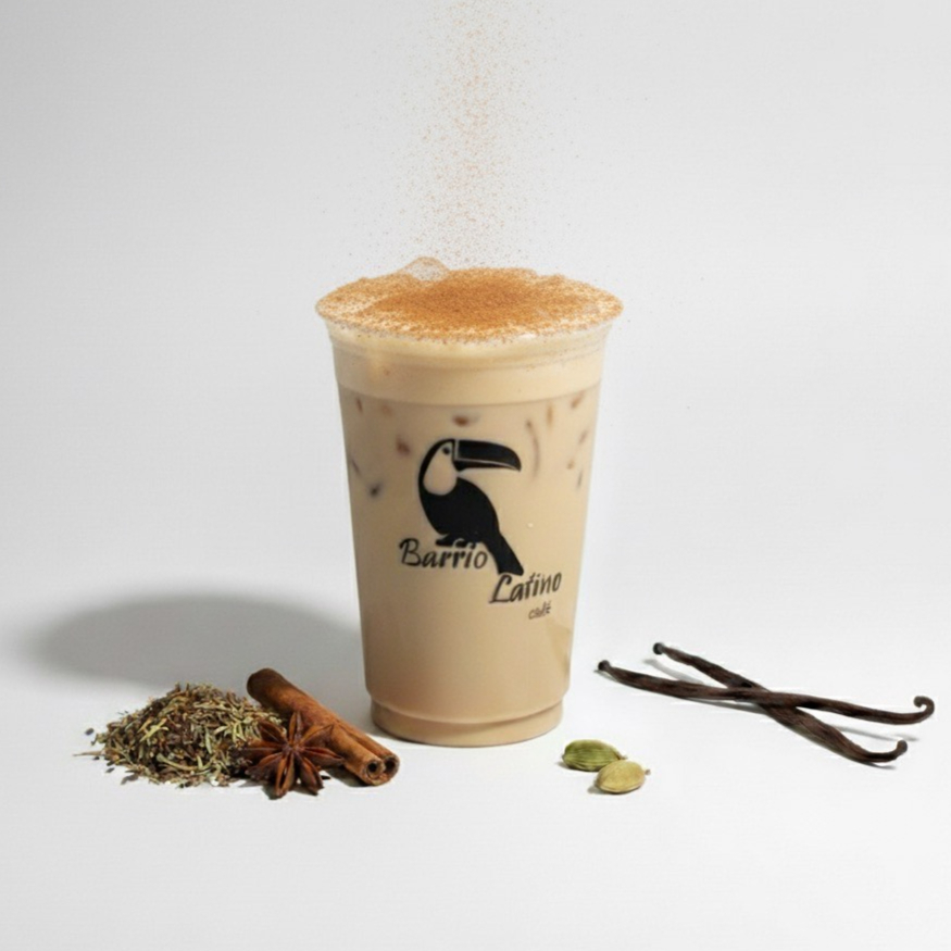 Té Chai de elección con leche y hielo.