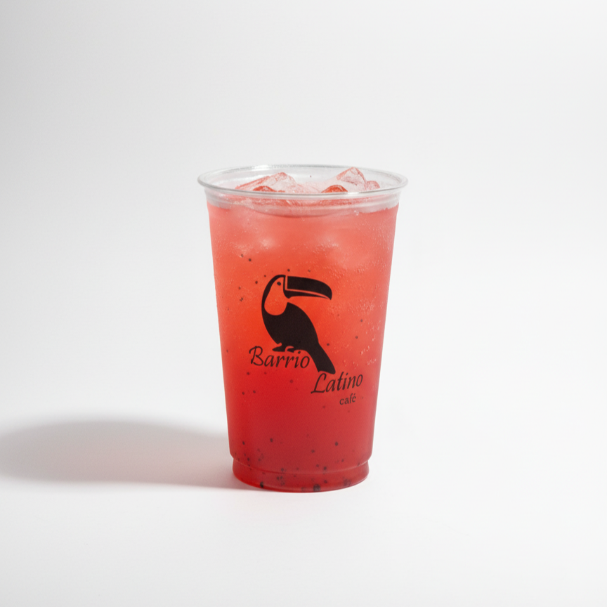Limonada mineral con fresa 100% natural y hielo.