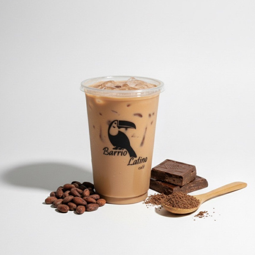 Chocolate mexicano con cacao, leche y hielo.